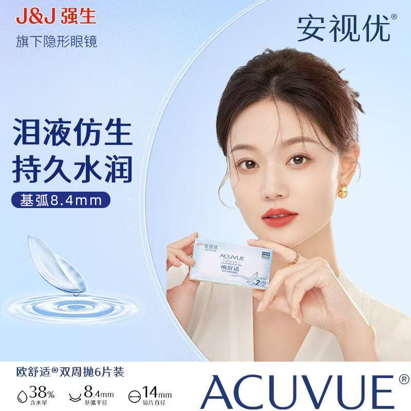 强生安视优欧舒适双周抛6片硅水凝胶基弧8.4mm半月抛近视隐形眼镜