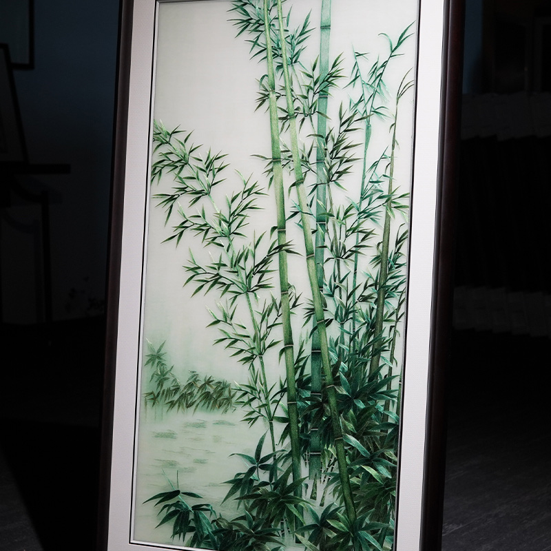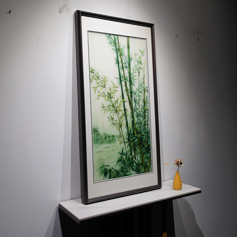 苏绣精品客厅挂画竹子竹报平安纯手工蚕丝线刺绣新中式书房装饰画