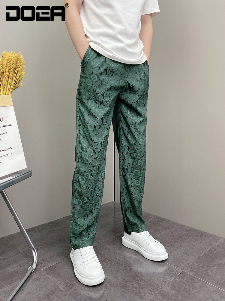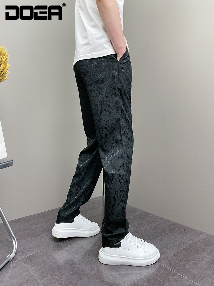 2025夏季薄款潮牌韩版高街民族风个性刺绣速干冰丝直筒男士休闲裤