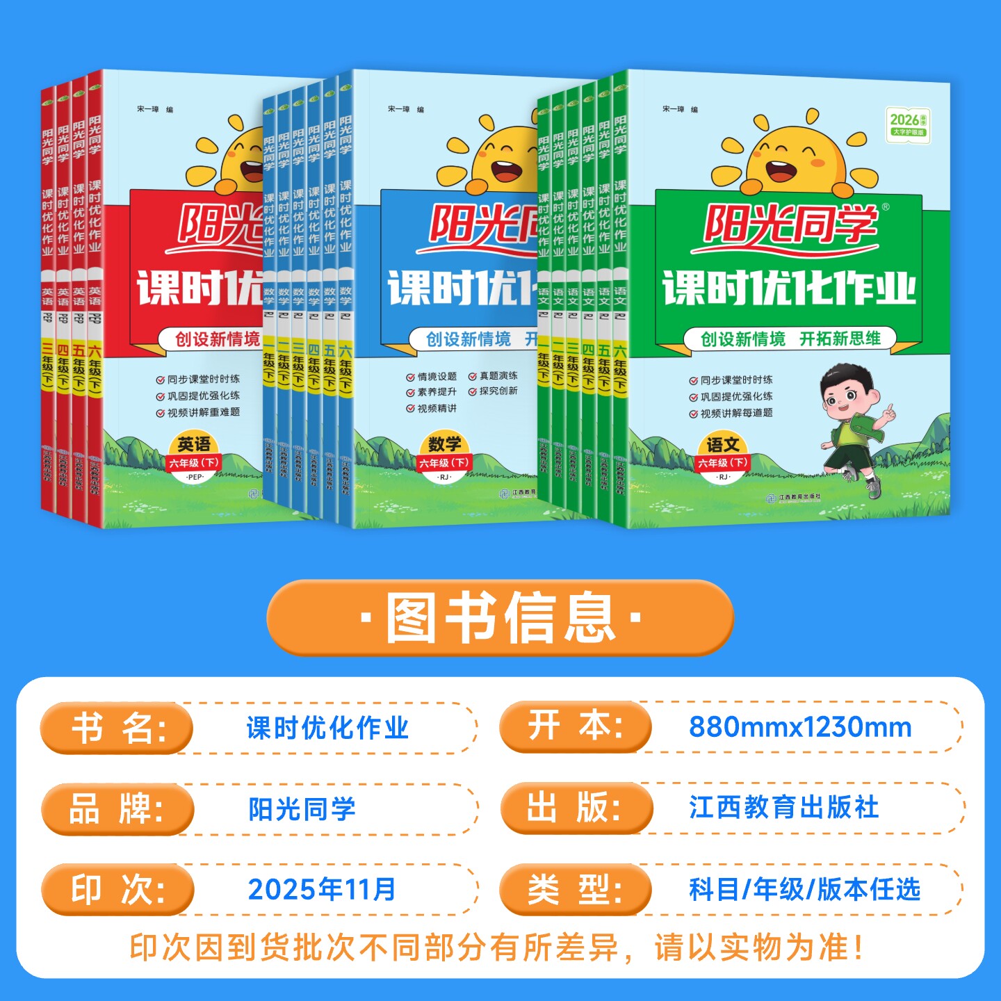 2026春阳光同学课时优化作业一二三四五六年级上下册语文数学英语部编人教北师青岛版小学寒假课堂训练练习册试卷测试卷达标作业本