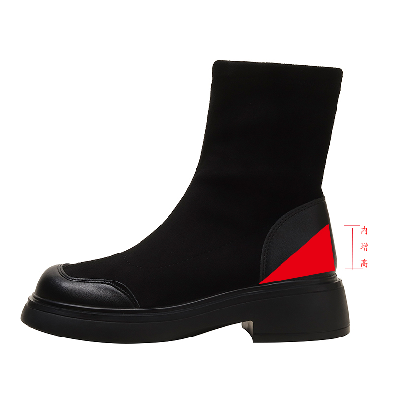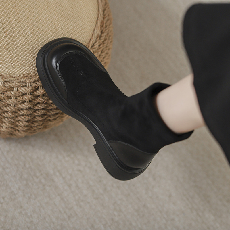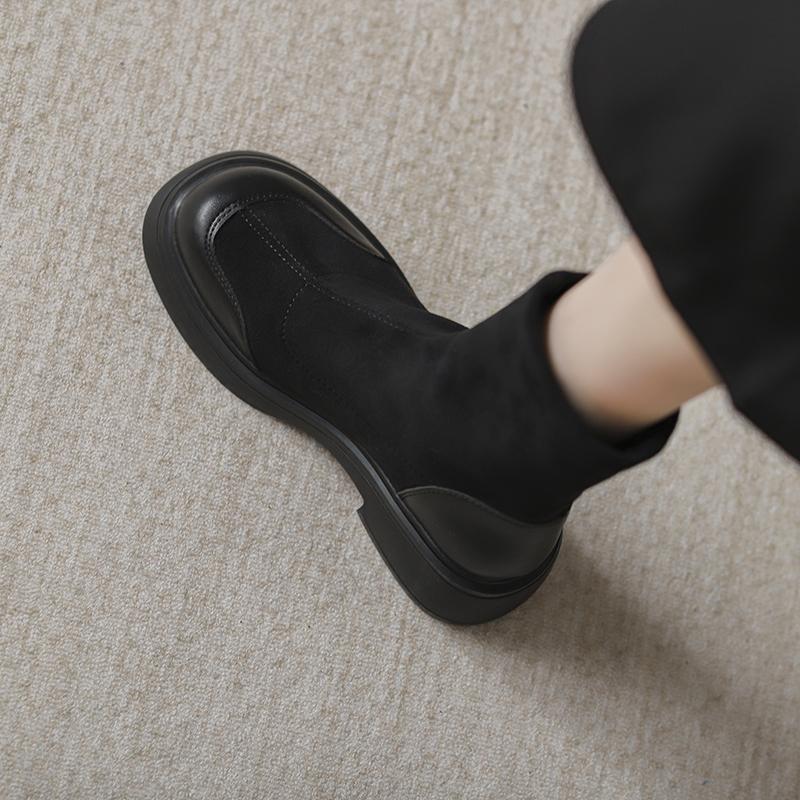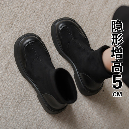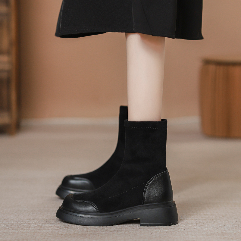 羊皮~内增高粗跟马丁靴女2025新款复古绒面短筒靴瘦瘦靴弹力厚底