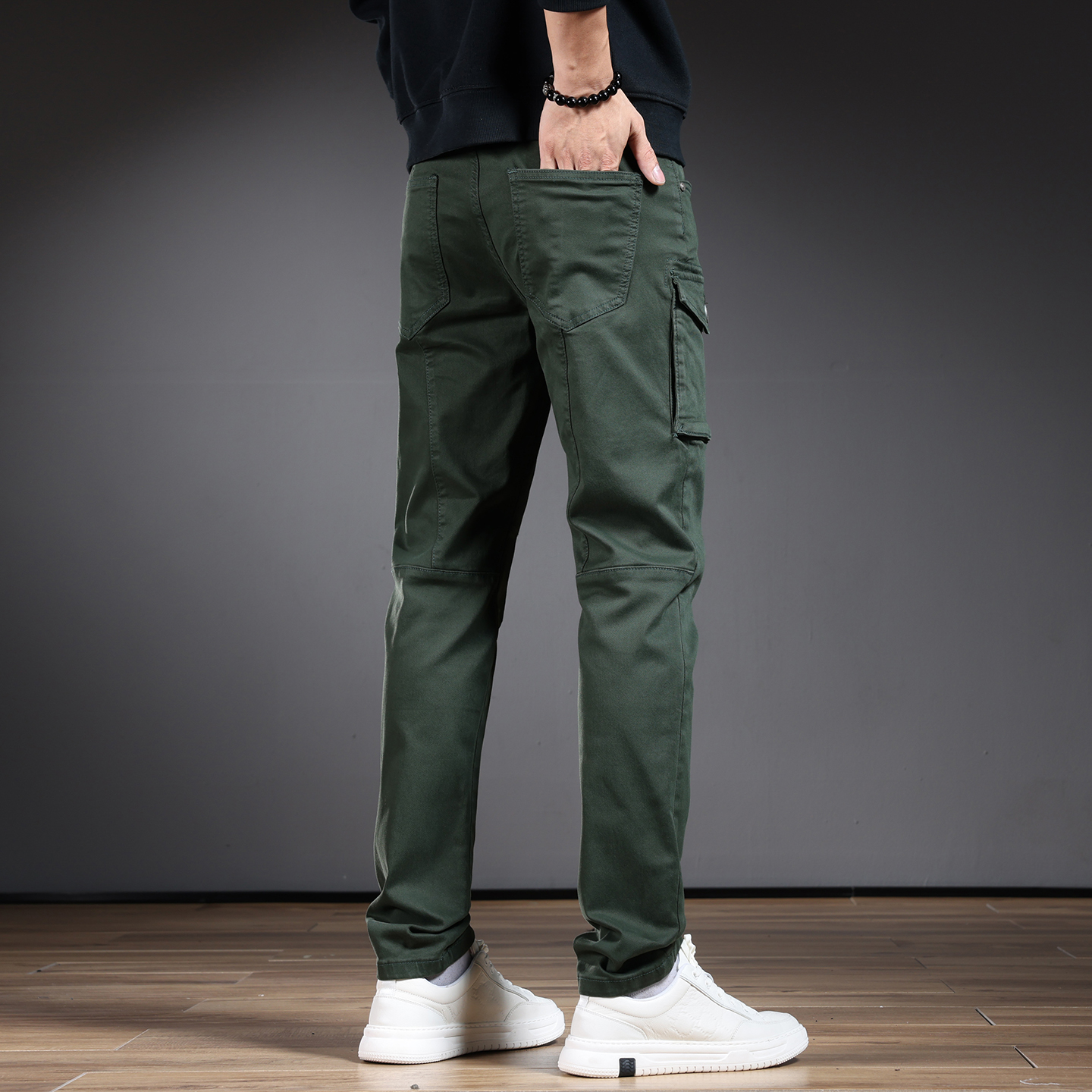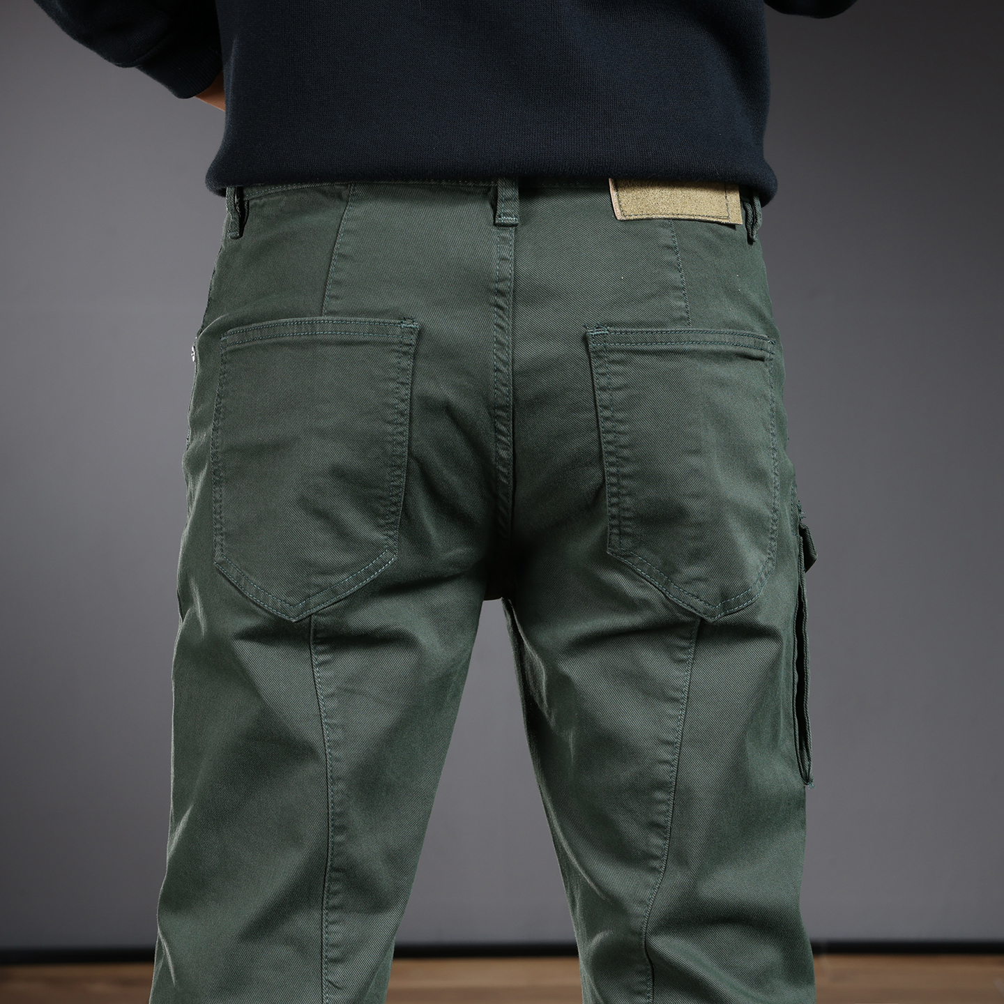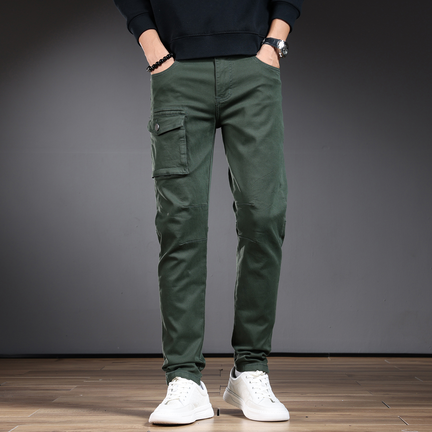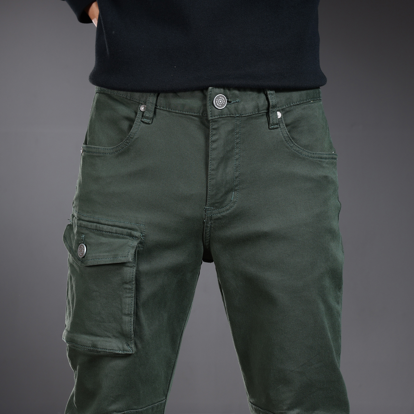 高端休闲裤子男款广东新塘乡牛仔裤修身小脚裤弹力墨绿长裤子秋冬