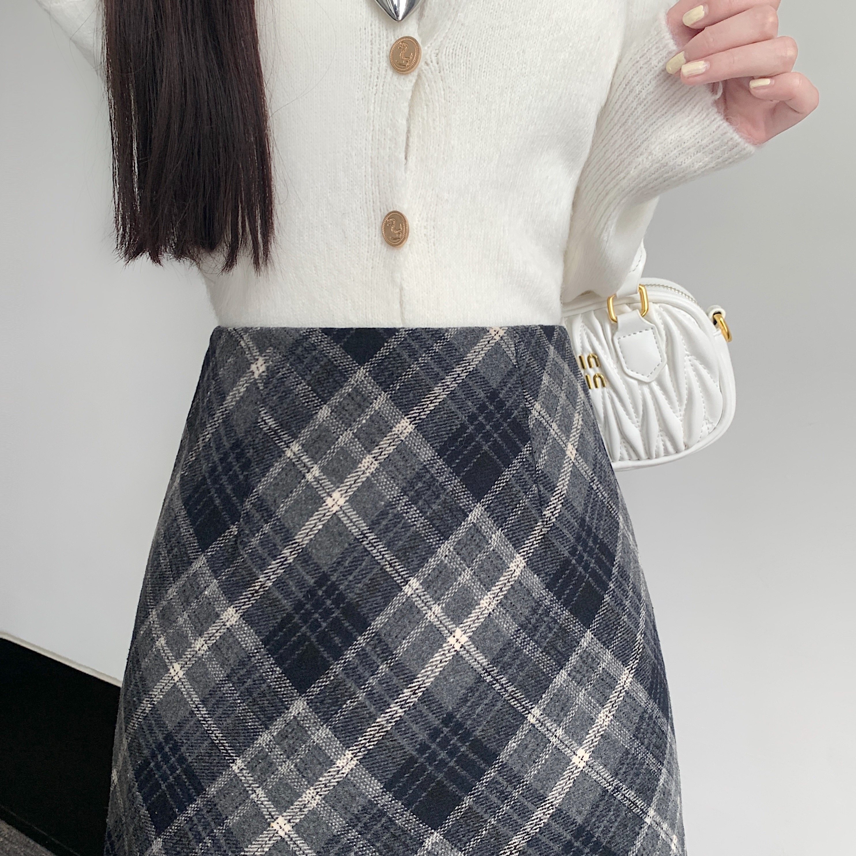 秋冬韩系毛呢半身裙女2025