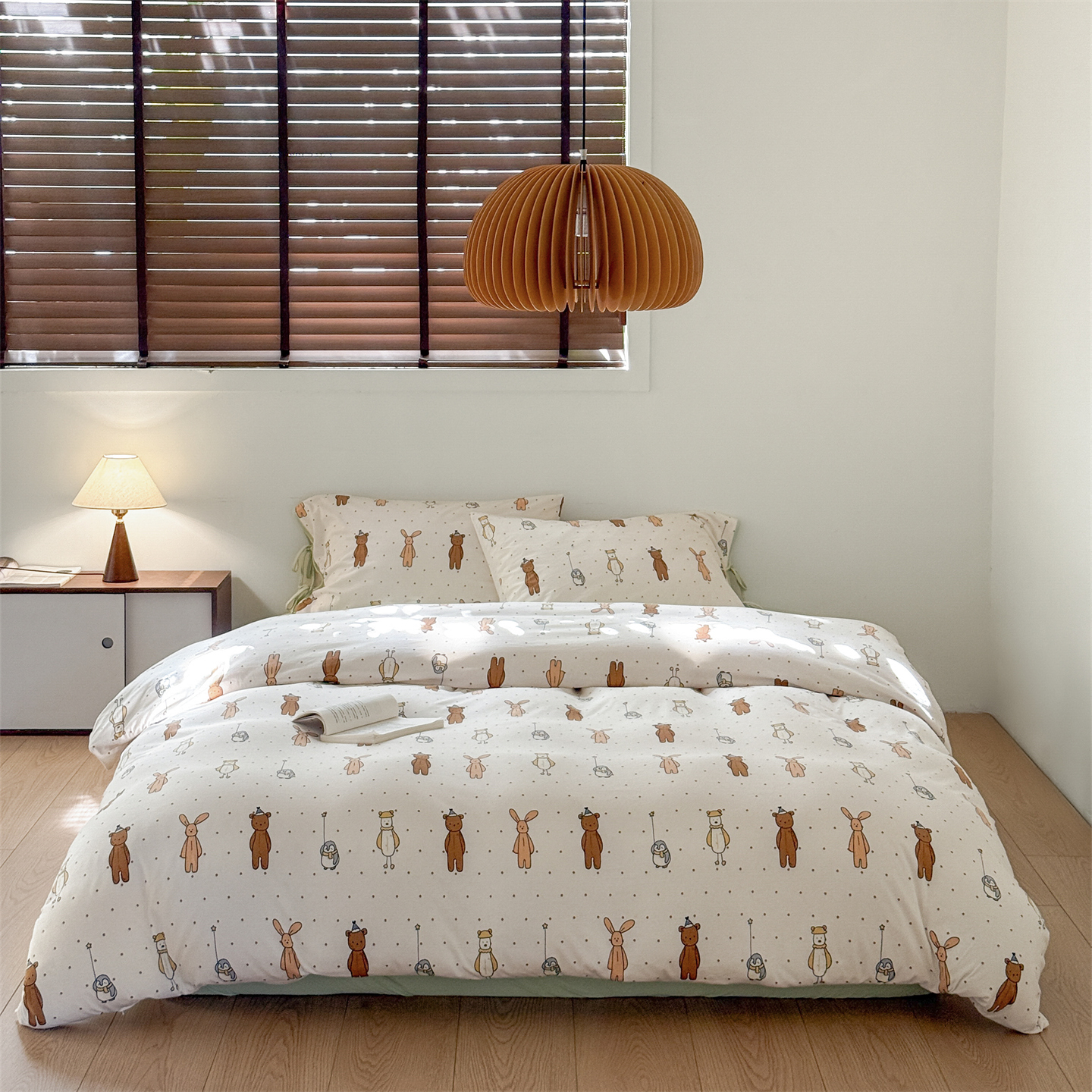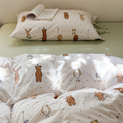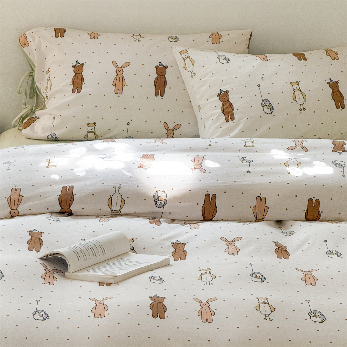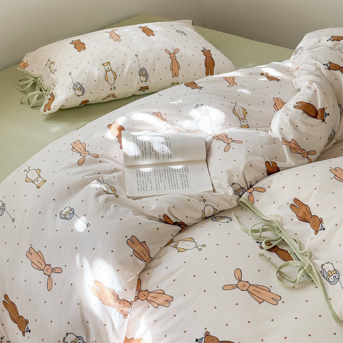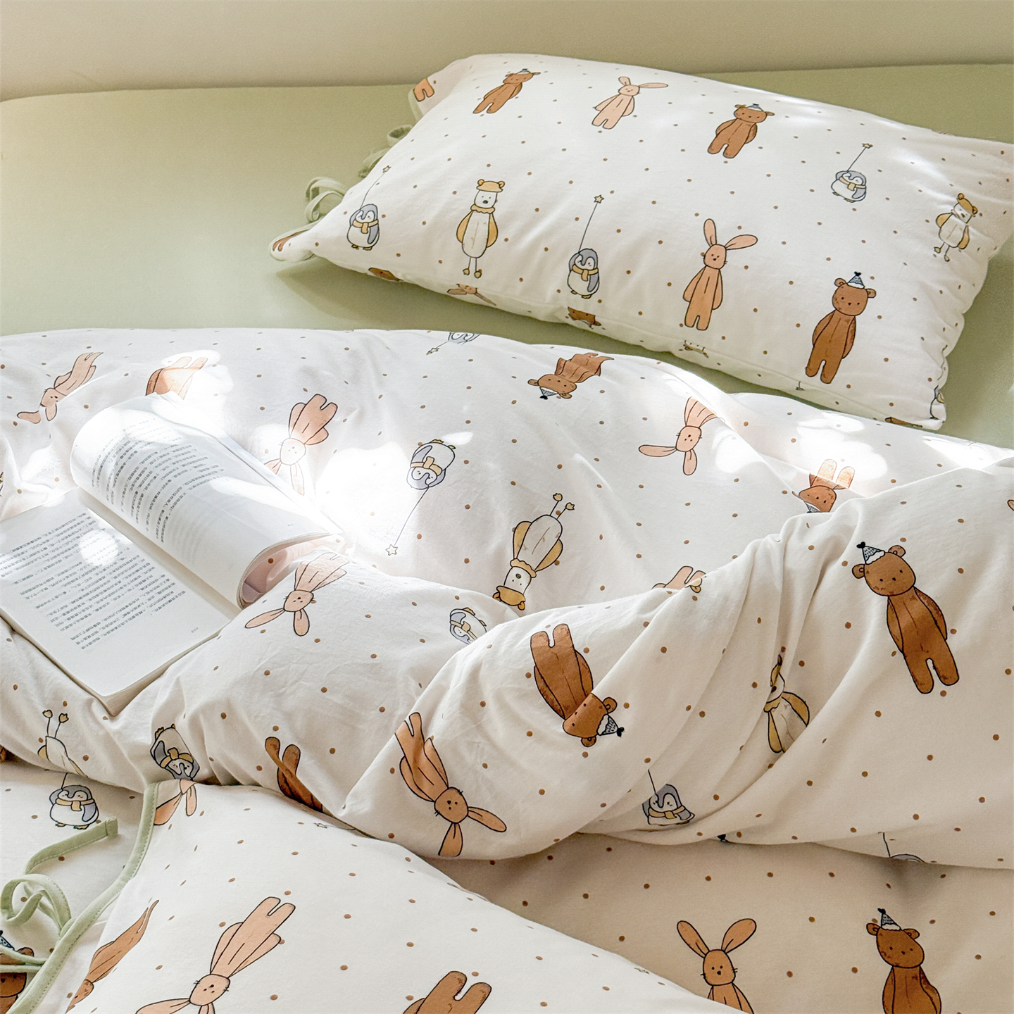 日韩式蝴蝶结绑带儿童卡通针织棉四件套 | 纯棉柔软A类奶油风床品