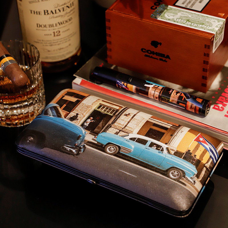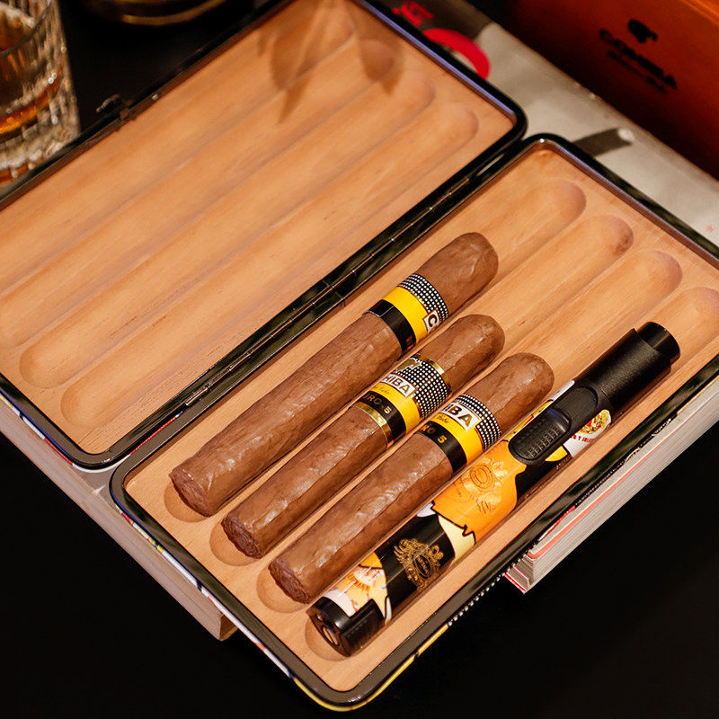 GUEVARA格瓦拉雪茄便携盒超薄4支装雪松木保湿外出随身打火机套装