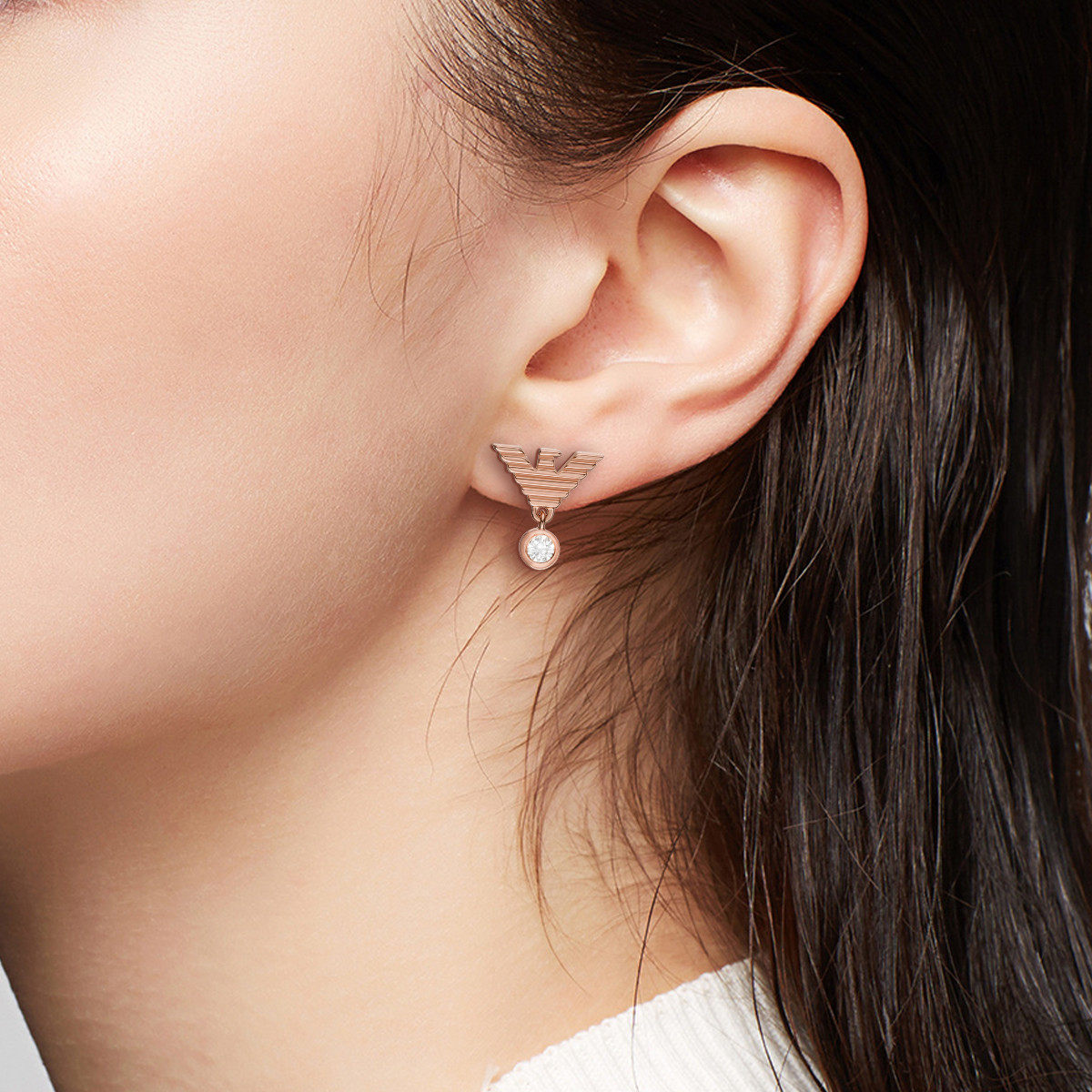 Armani阿玛尼官方耳钉女新款 简约时尚锆石波状鹰标耳饰礼物女生