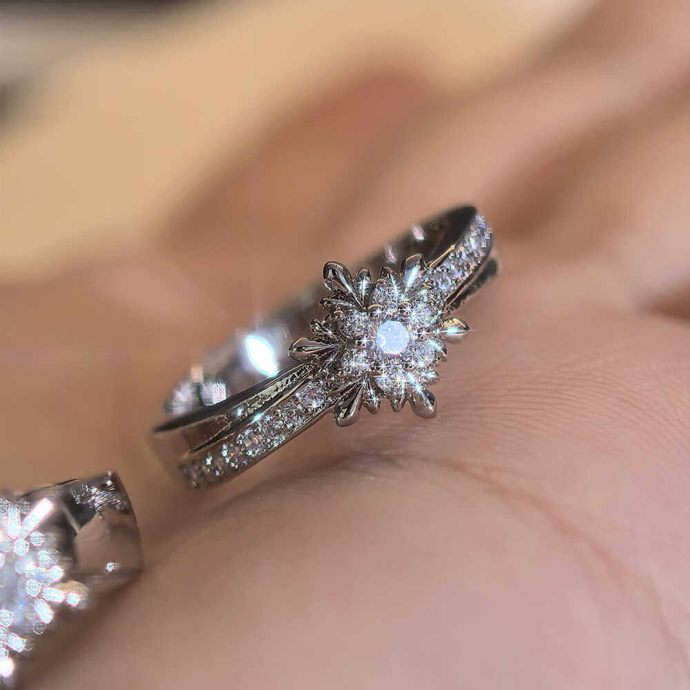 黎深100级牵绊戒指s925纯银开口雪花婚戒锆石微镶精致高级对戒