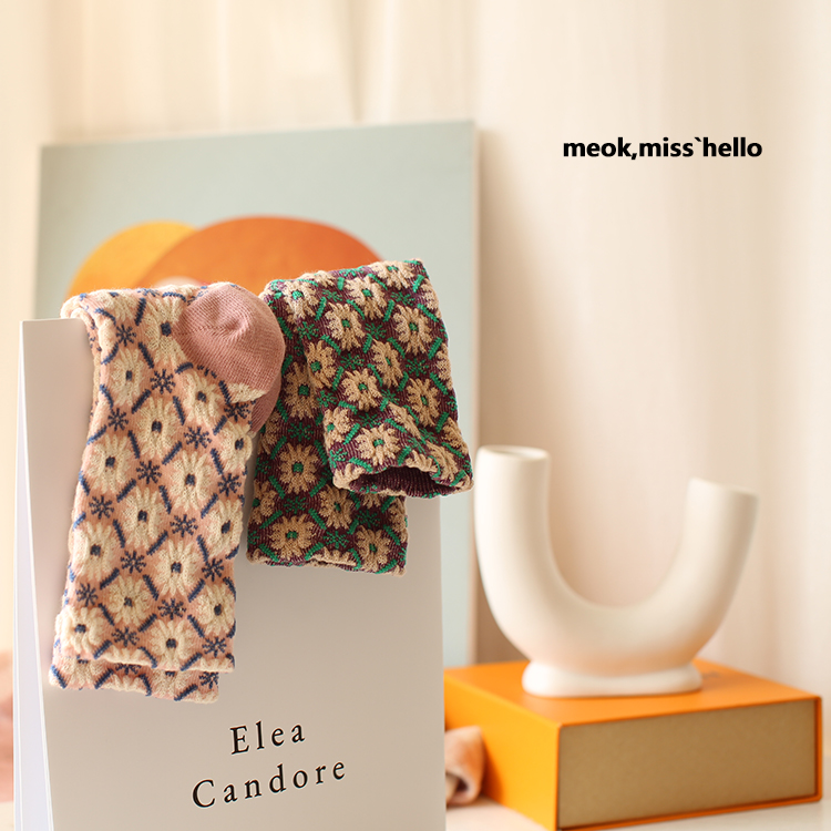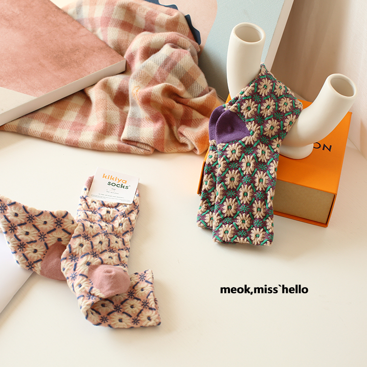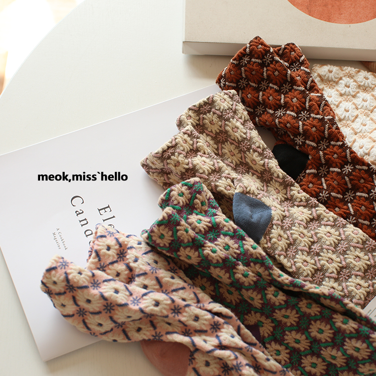 韩国外贸货 甜美田园风袜子女纯棉ins韩版秋冬复古风小碎花中筒袜