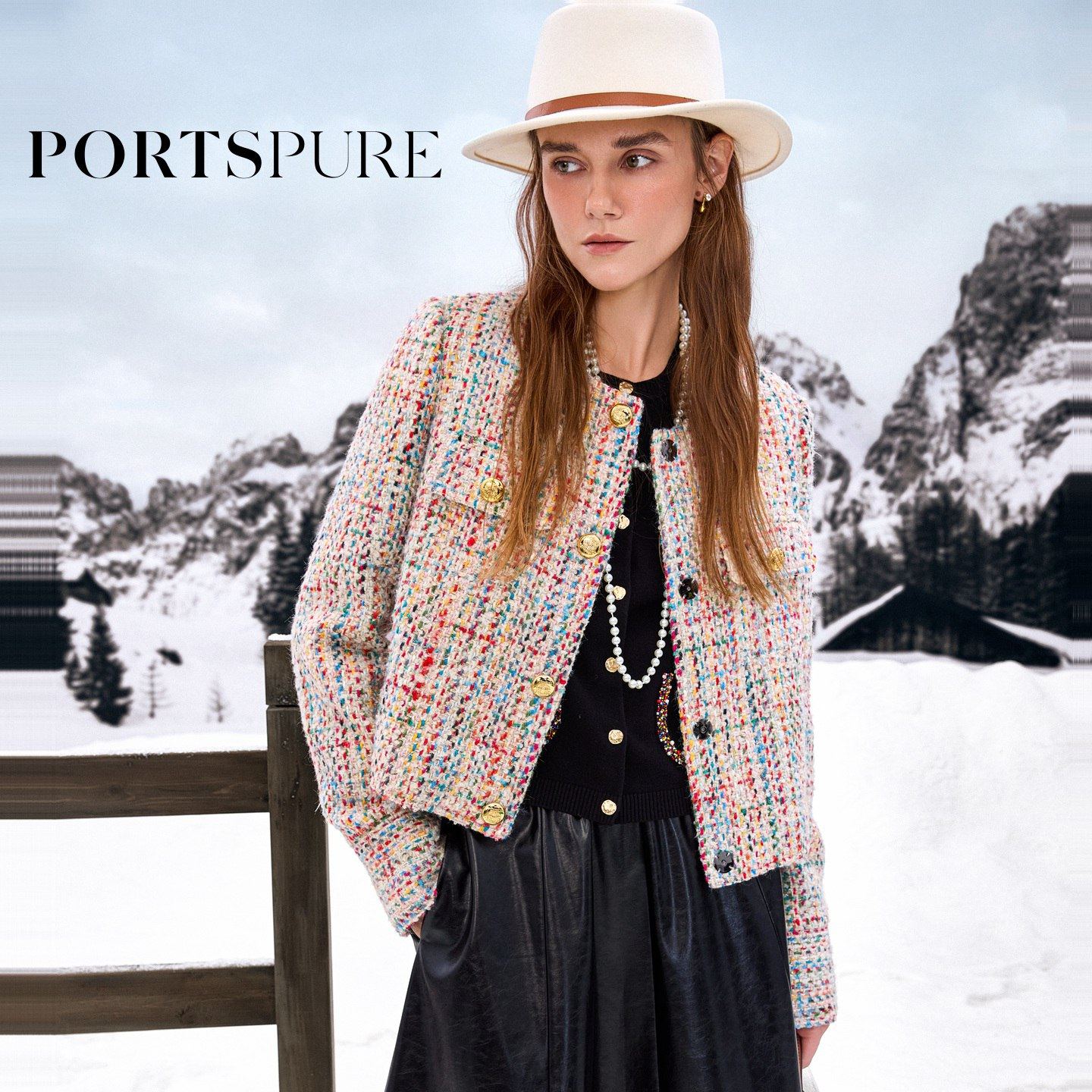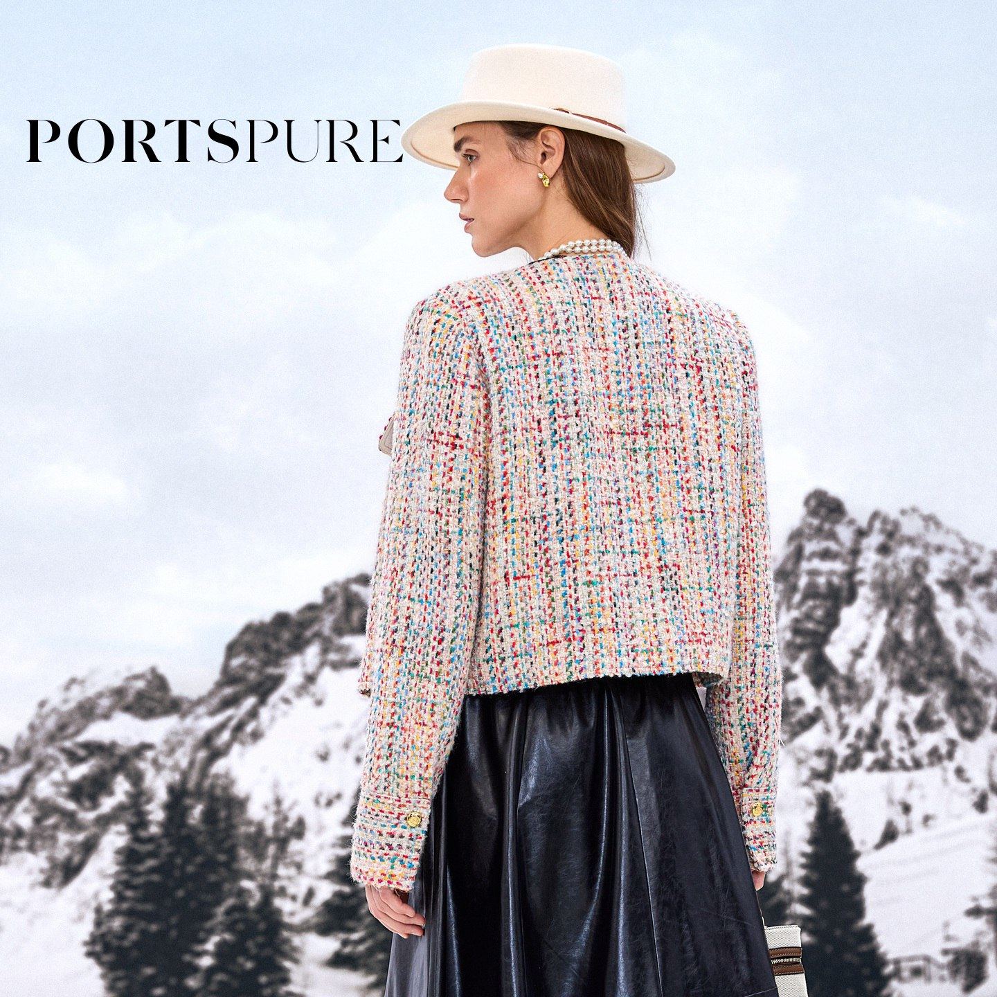 商场同款 宝姿PORTSPURE女装2025秋季新品肌理感彩花呢小香风外套