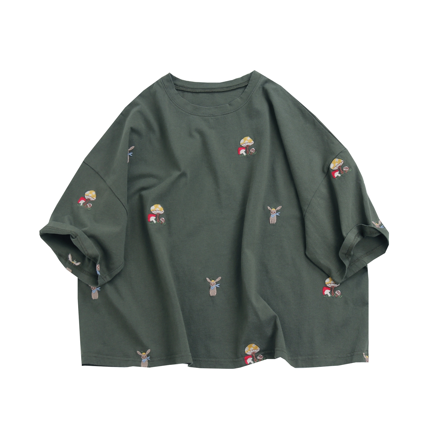 2025年新款韩版时尚百搭刺绣短袖T恤女宽松休闲圆领上衣潮