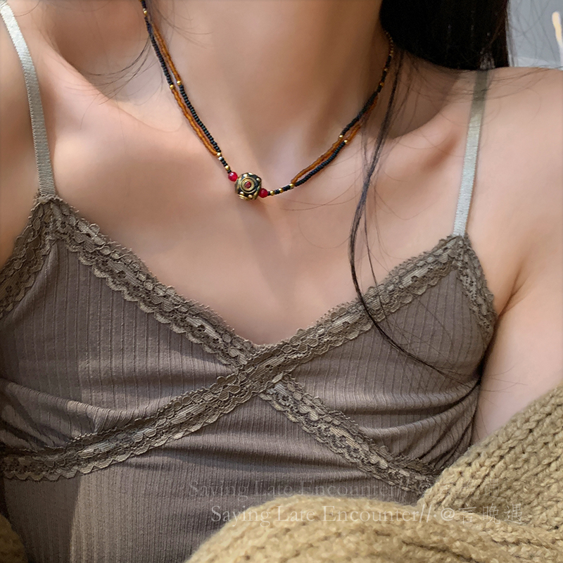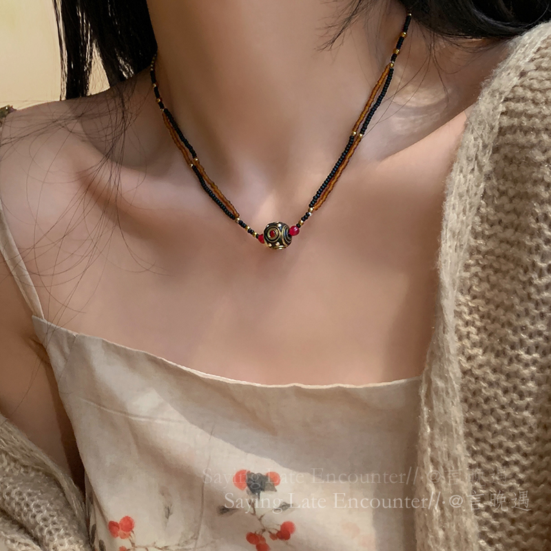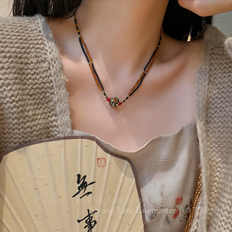 速发新中式藏式米珠项链简约复古百搭毛衣链小众设计感民族风配饰