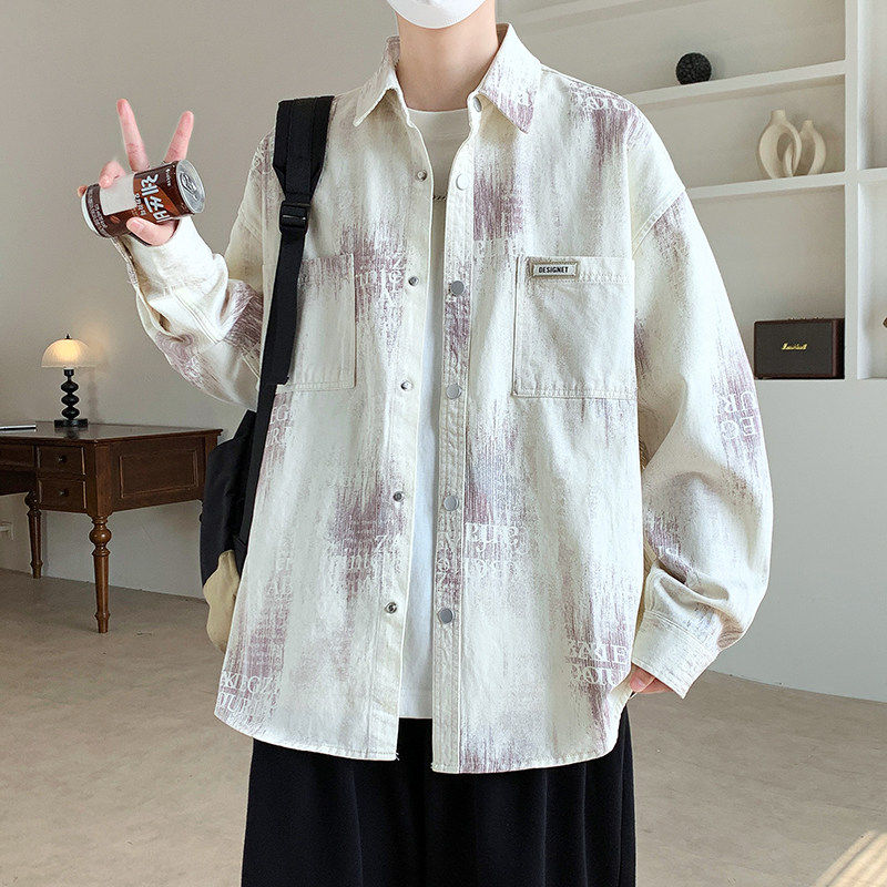 2026春季上新青少年美式扎染翻领撞色夹克韩系字母印花休闲上衣