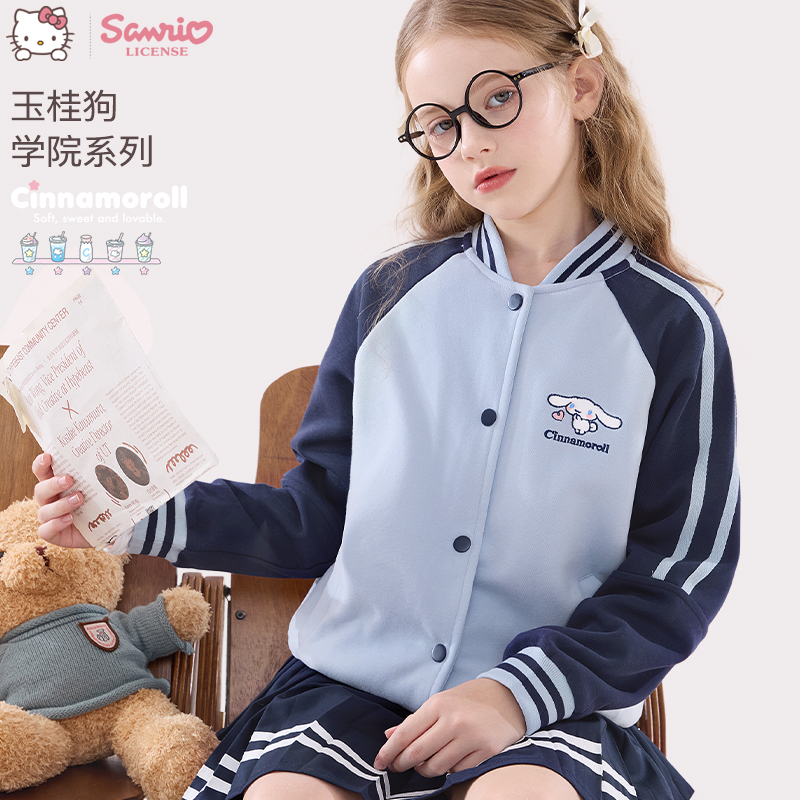 玉桂狗女童棒球服秋装新款2025洋气儿童外套宽松休闲服春大童上衣