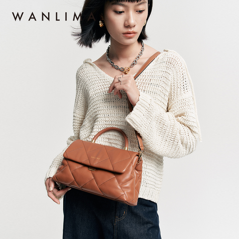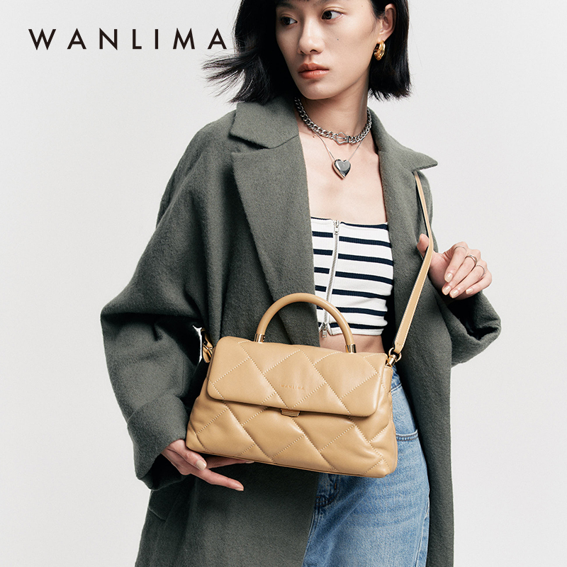 万里马羊皮包菱格小香风