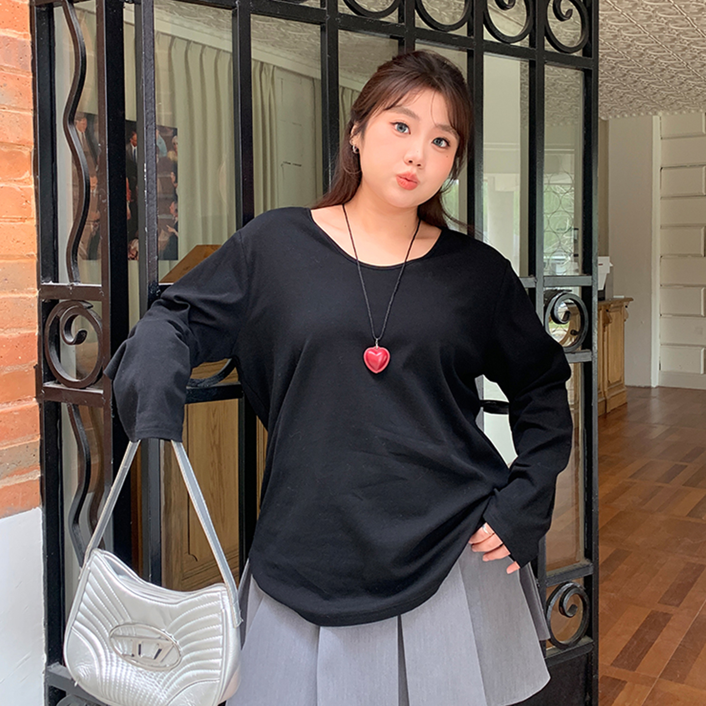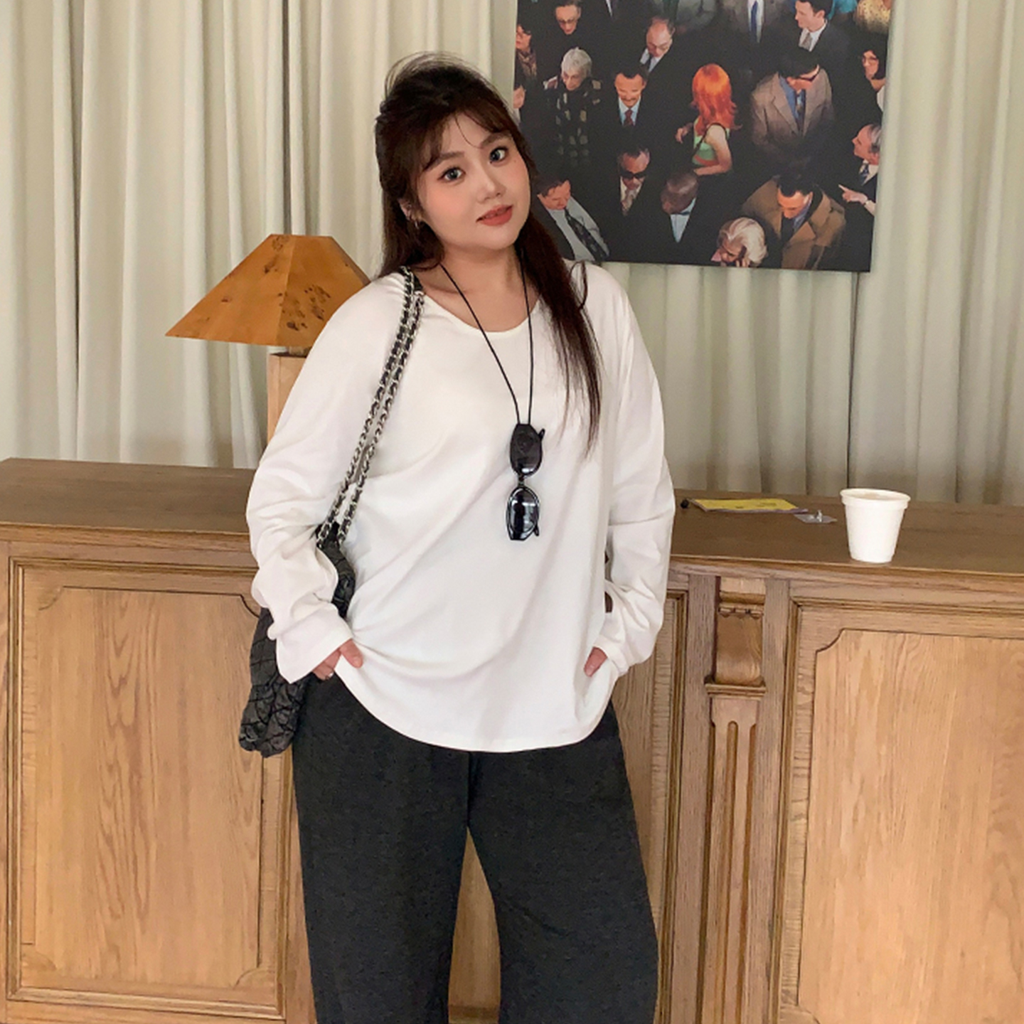 2025秋季新款慵懒风V领纯色长袖T恤胖mm大码女装显瘦遮肉百搭上衣
