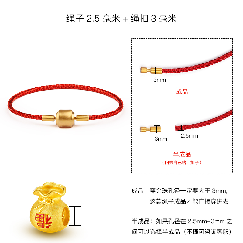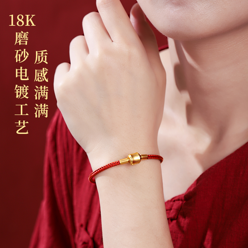 转运珠手绳防水钢丝3D硬金黄金串珠替潮编织皮绳男女情侣红绳手链
