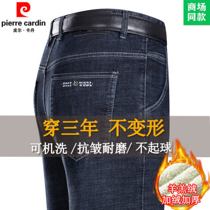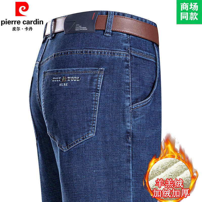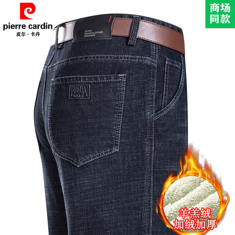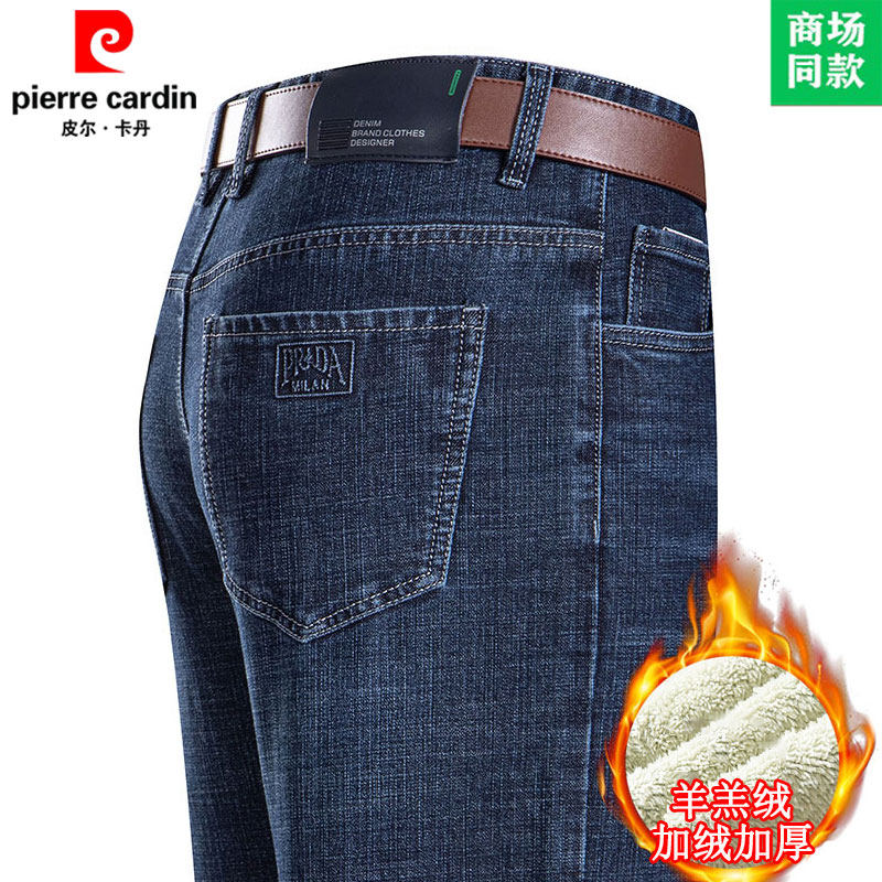 皮尔卡丹冬季牛仔裤男加绒特厚宽松直筒男裤羊羔绒保暖爸爸长裤子