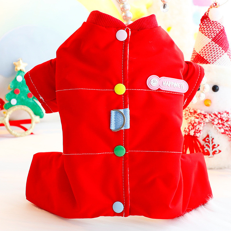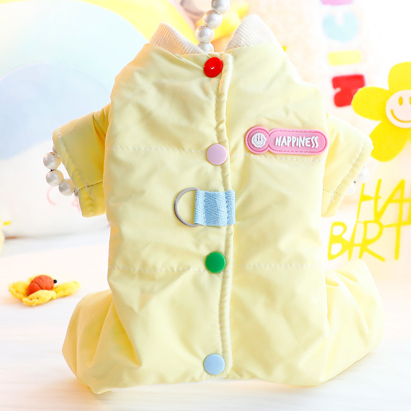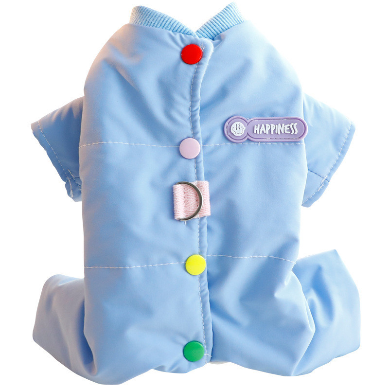 狗狗衣服秋冬装四脚厚款薄绒背开扣糖果彩色可牵引小型犬宠物泰迪
