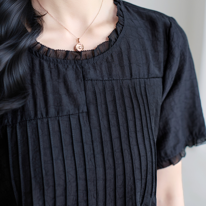 2025年夏季高级气质黑色淡人短袖T恤大码女装胖MM时尚轻熟风上衣