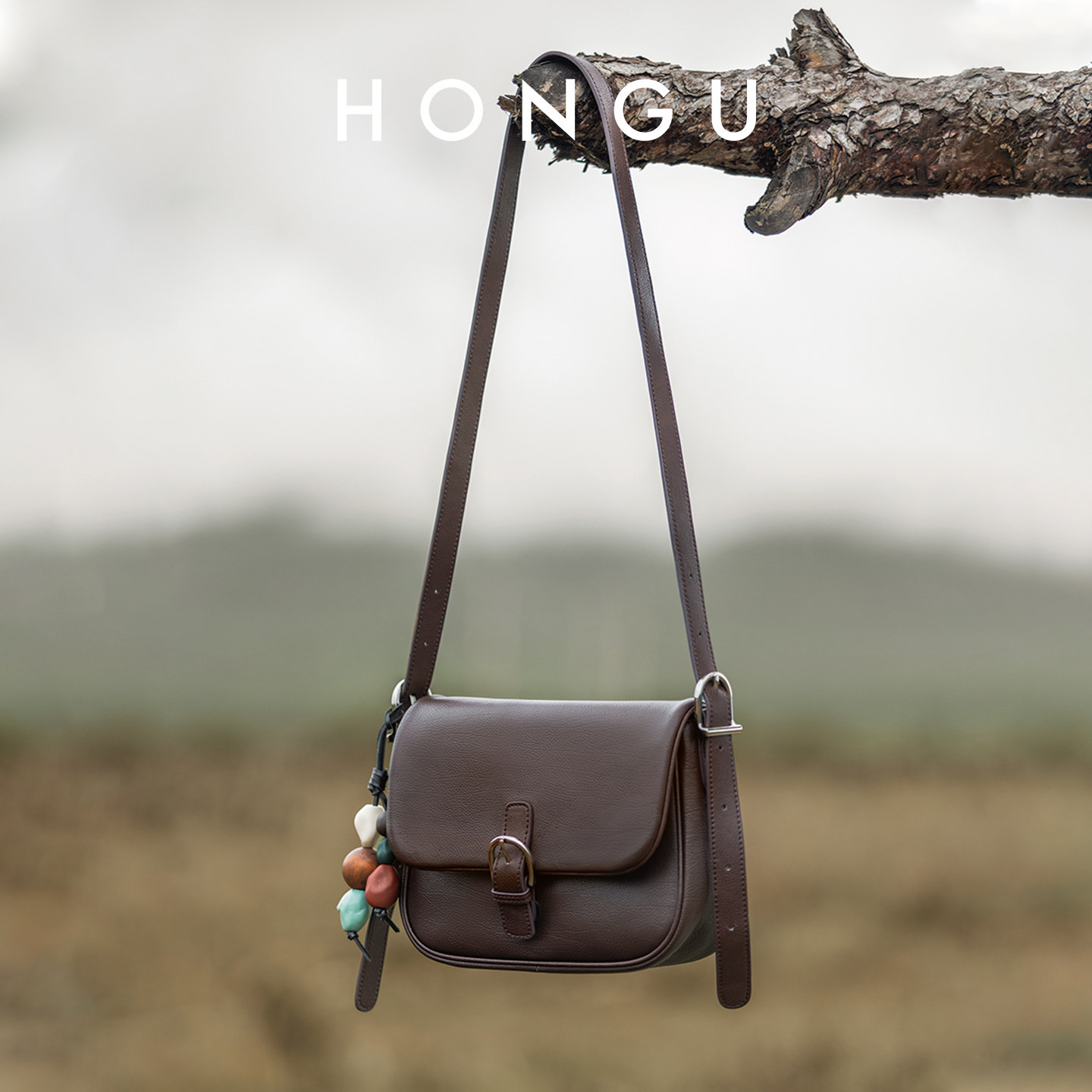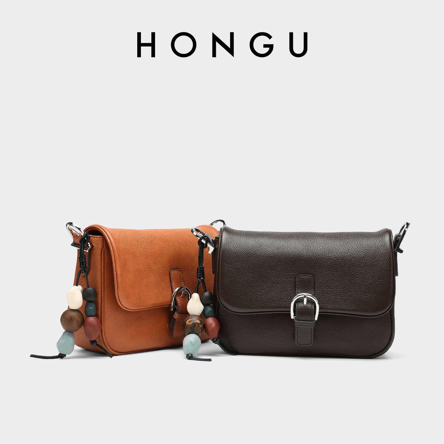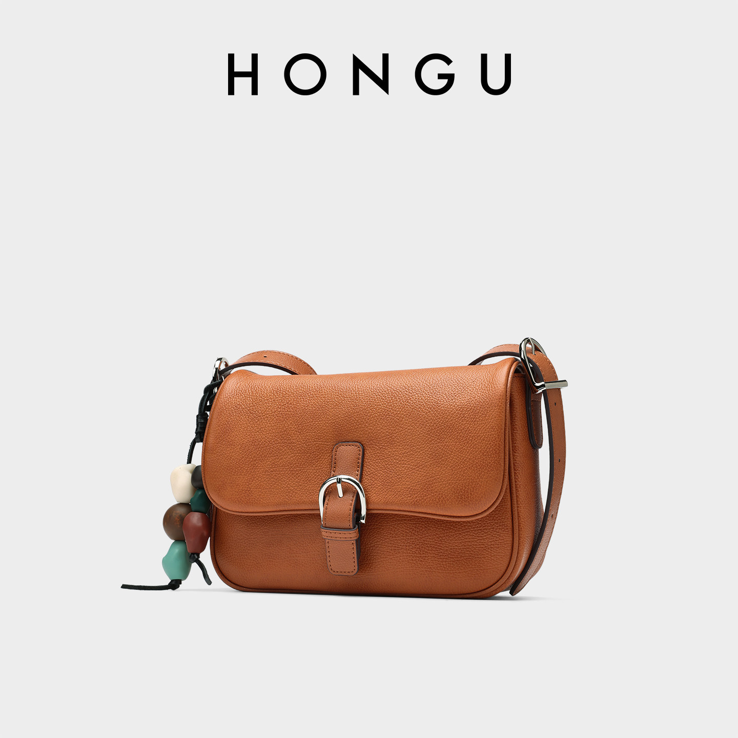 HONGU/红谷包包女士新款质感真皮单肩斜挎包复古小众高级感马鞍包