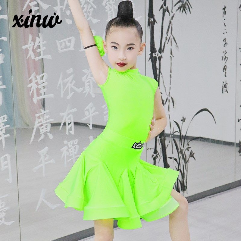 鑫舞拉丁舞e比赛服女童表演服练功少儿短袖珠光大裙摆规定专业服