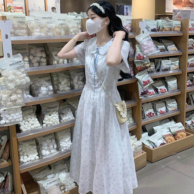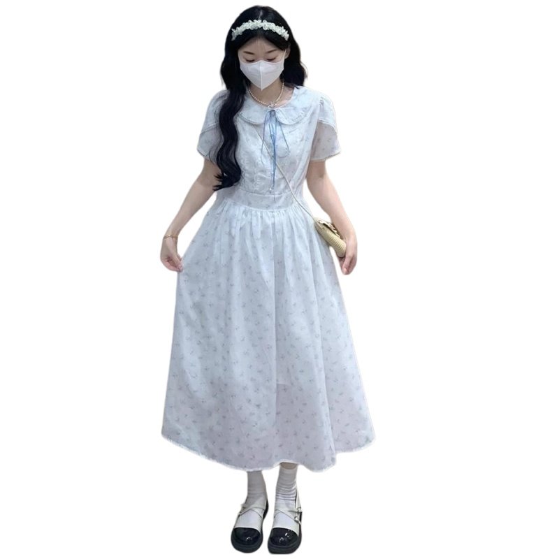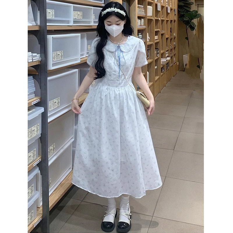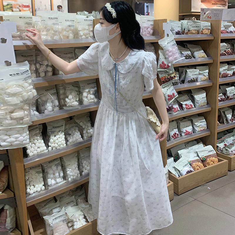 少女连衣裙夏装女大童娃娃领长裙夏季小学生日系甜美泡泡袖长裙子