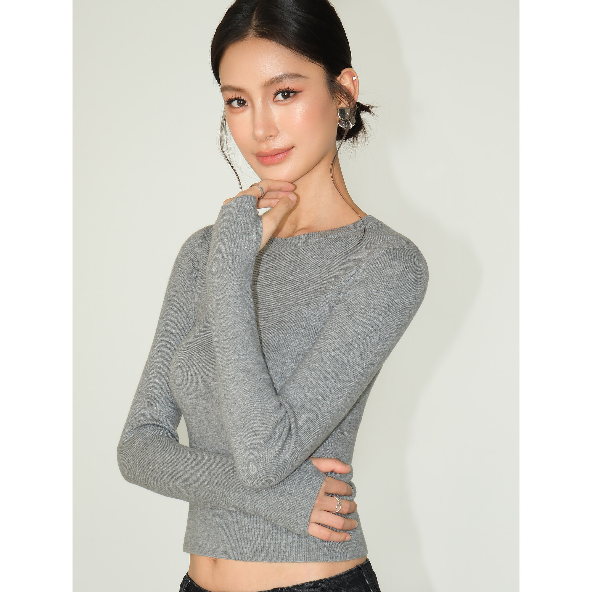 NEVA HU 实穿主义 极简圆领套头长袖针织衫女基础款通勤打底上衣