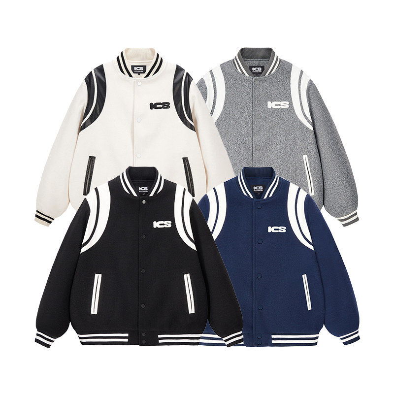 【黄俊捷同款】 ics丨iconslab美式复古棒球服PU皮夹克休闲外套秋