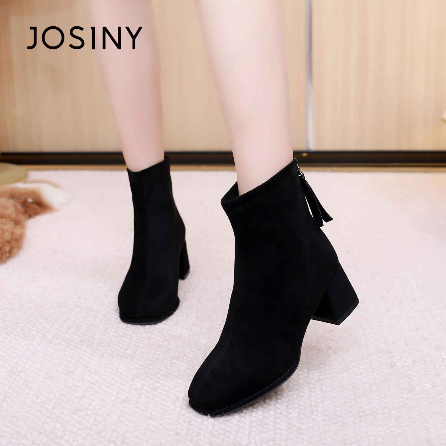 卓诗尼2025秋冬新款粗跟短靴女时尚舒适气质瘦瘦靴女靴显瘦时装靴