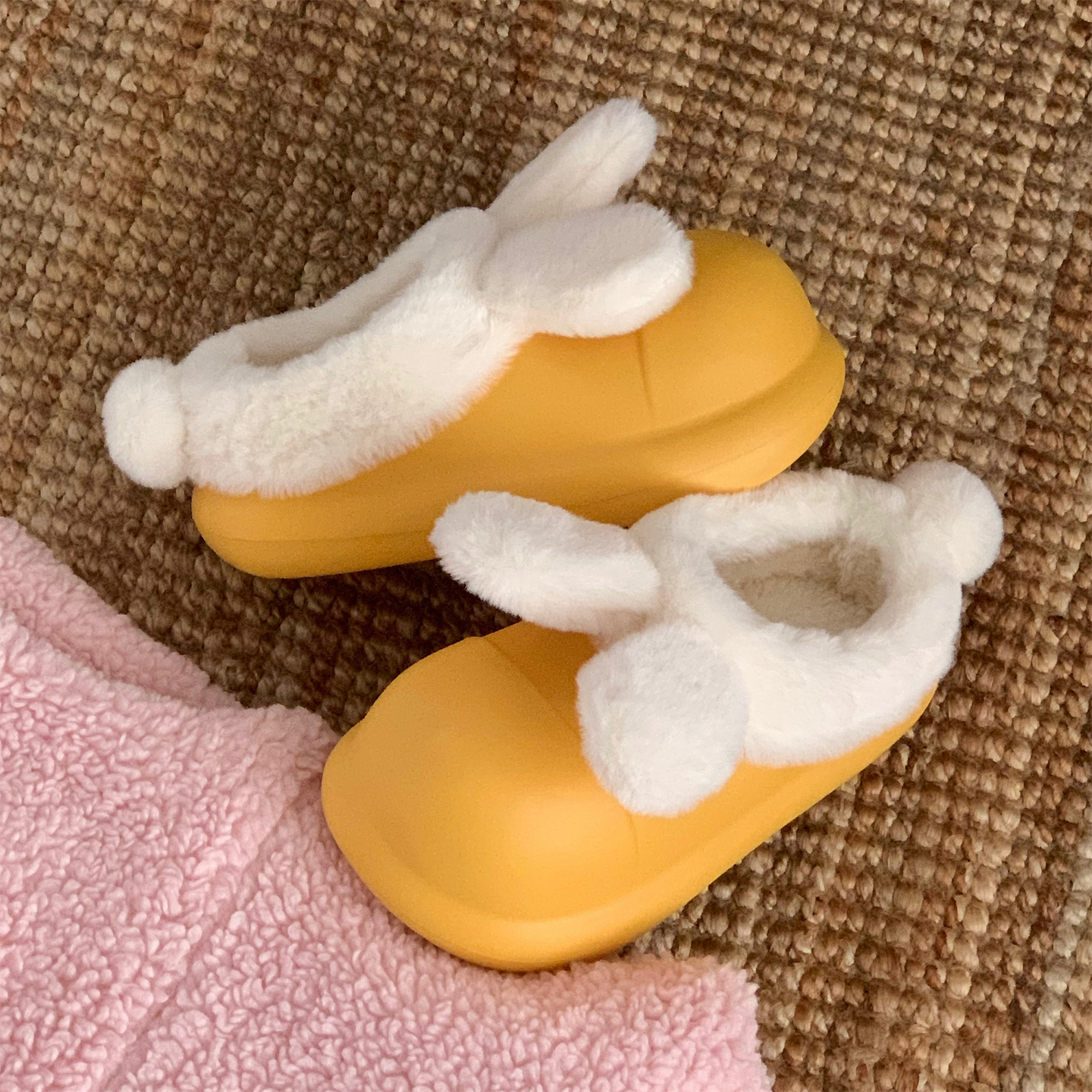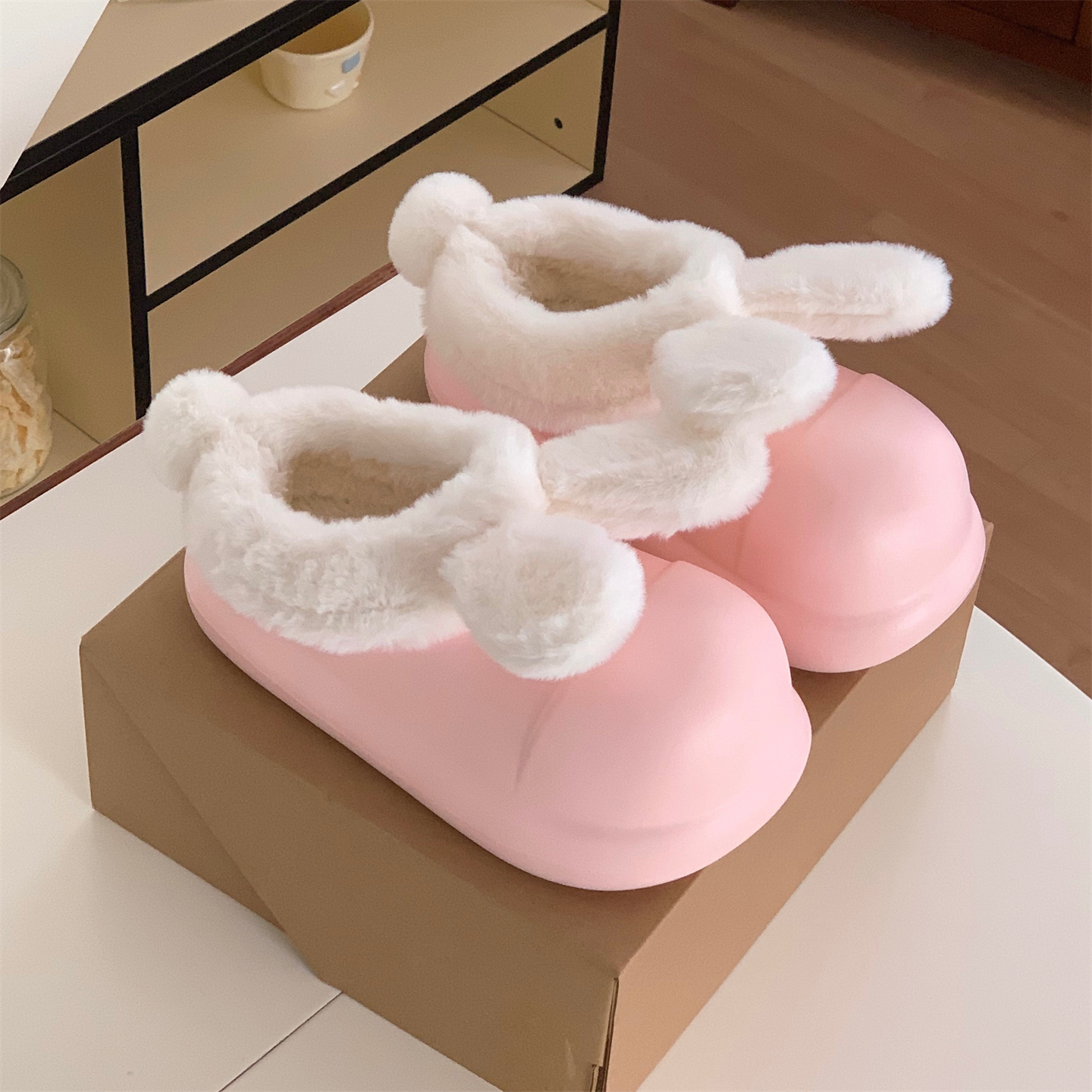 细细条 保暖外穿可爱兔耳朵棉拖鞋女防滑厚底冬季居家防水厨师鞋
