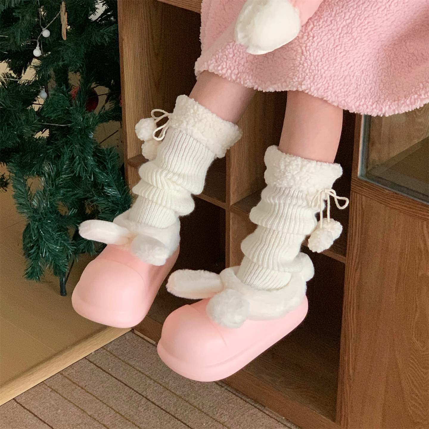 细细条外穿可爱兔耳朵棉拖鞋