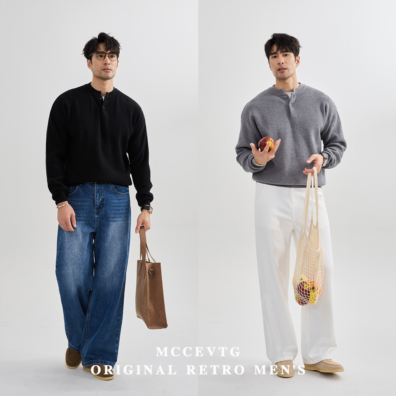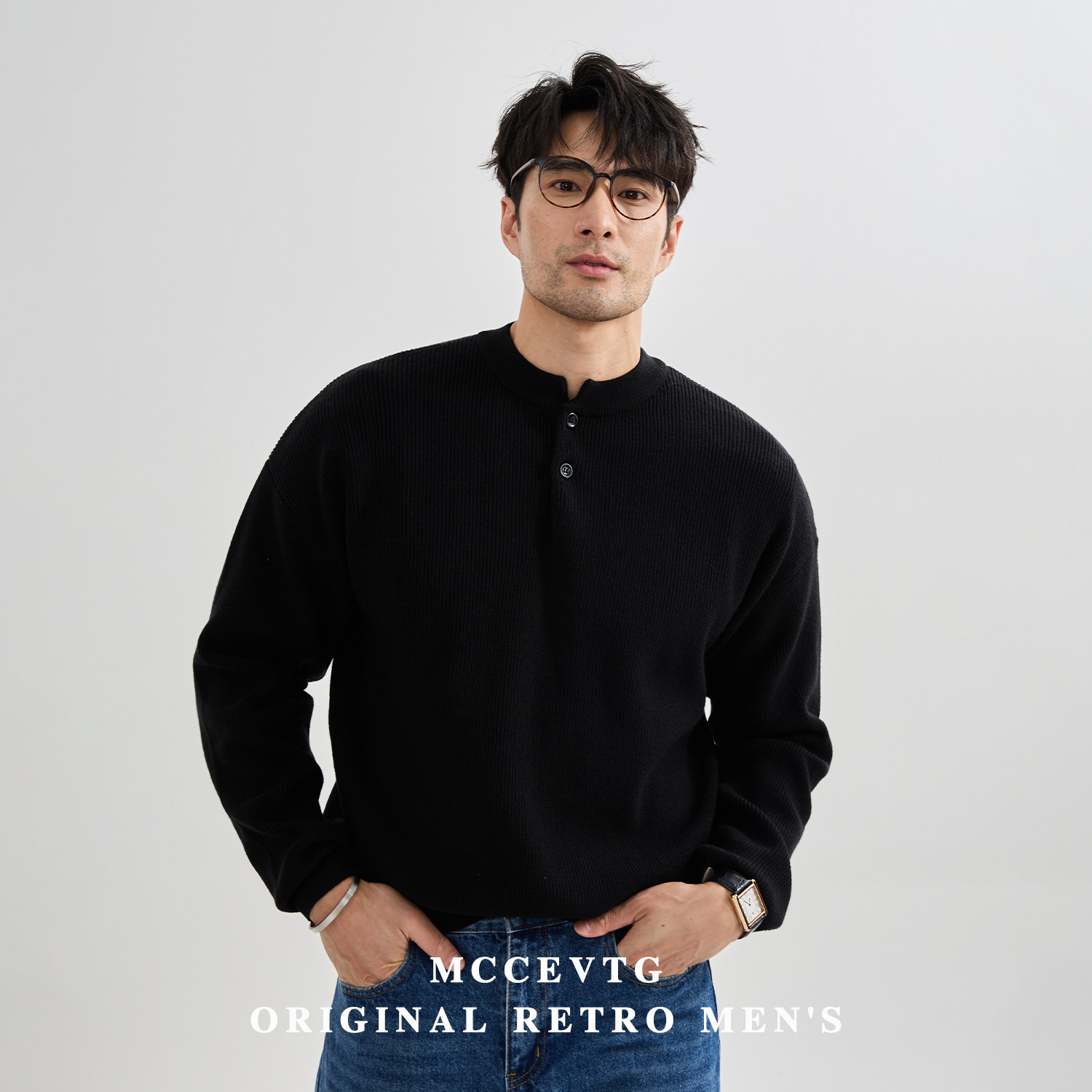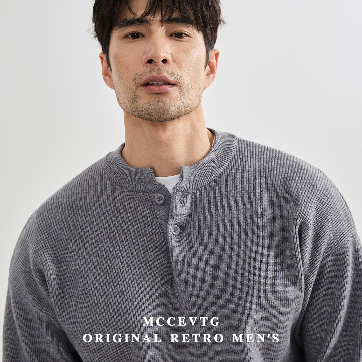 MCCEVTG抗起球休闲纯色亨利毛衣
