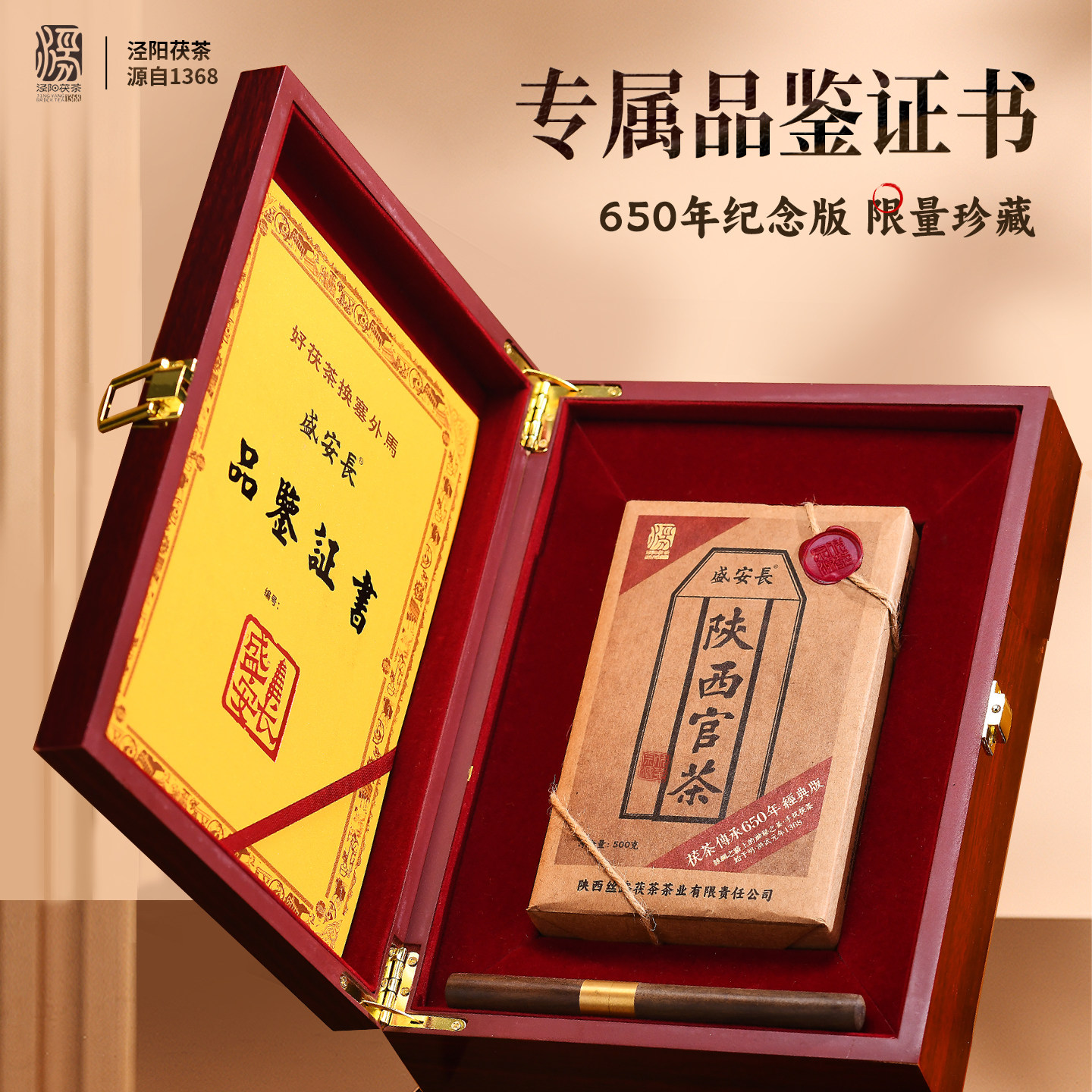 【非遗技艺】特一级泾阳茯茶红木礼盒500g 黑茶砖茶茯茶西安特产