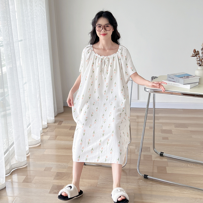 方领云朵棉大码睡裙女夏季薄款
