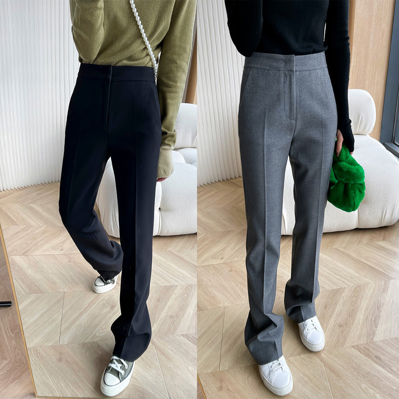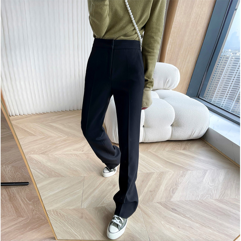 2025春季高腰显瘦窄版直筒裤休闲修身韩版西装拖地裤高级垂感长裤