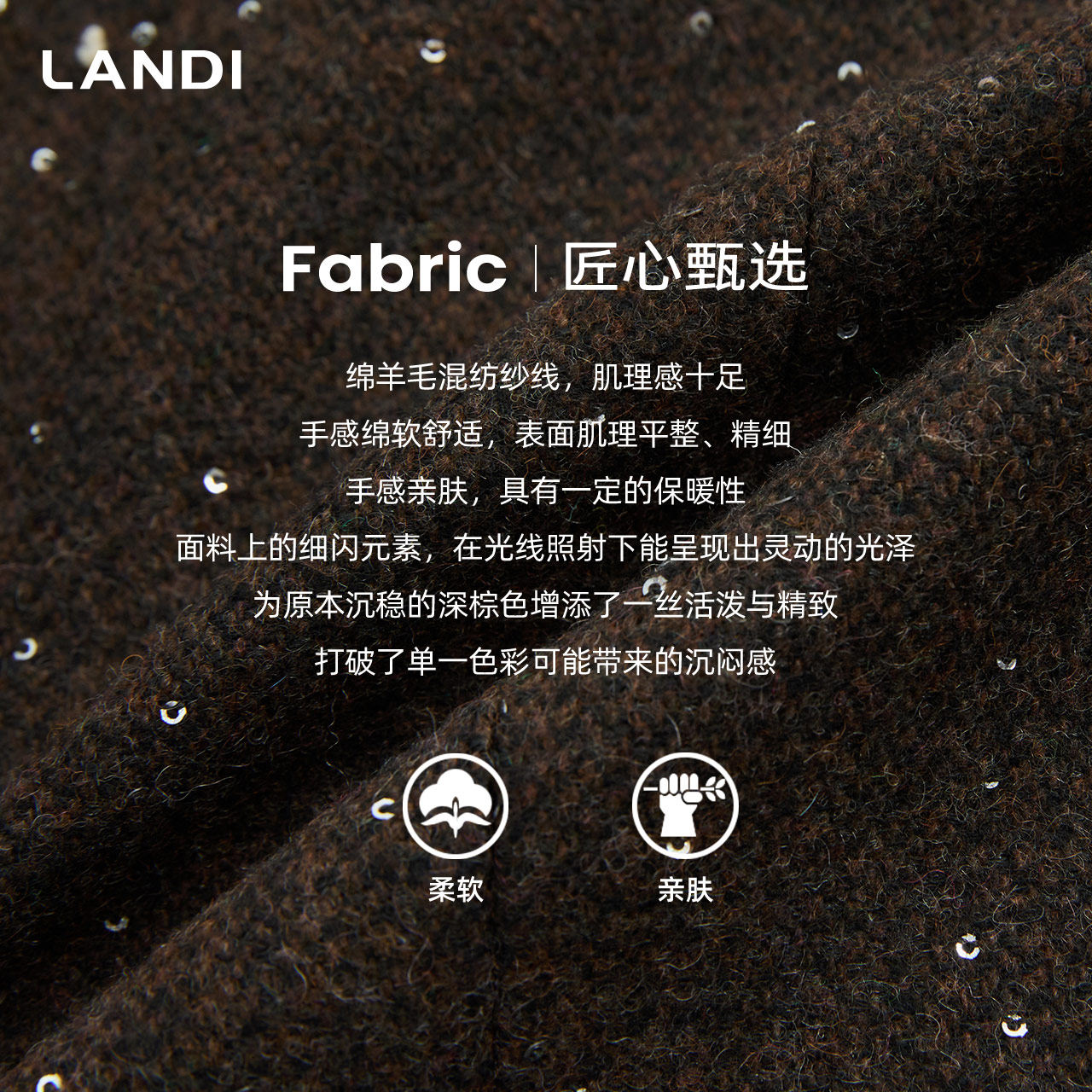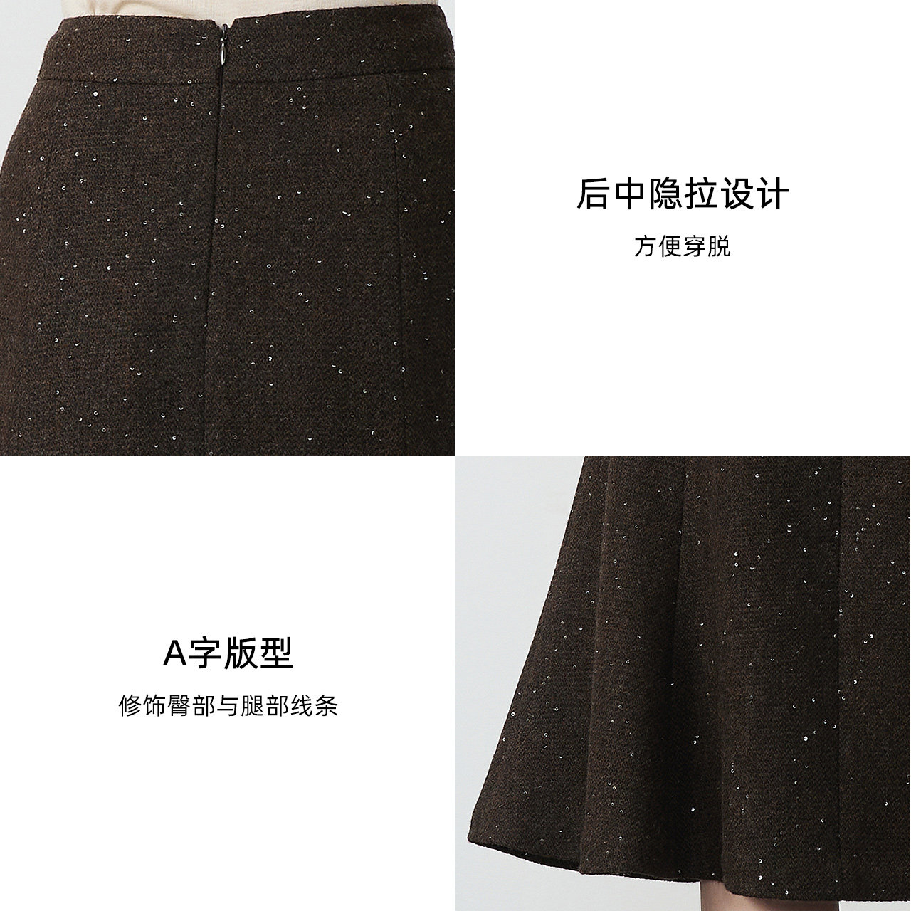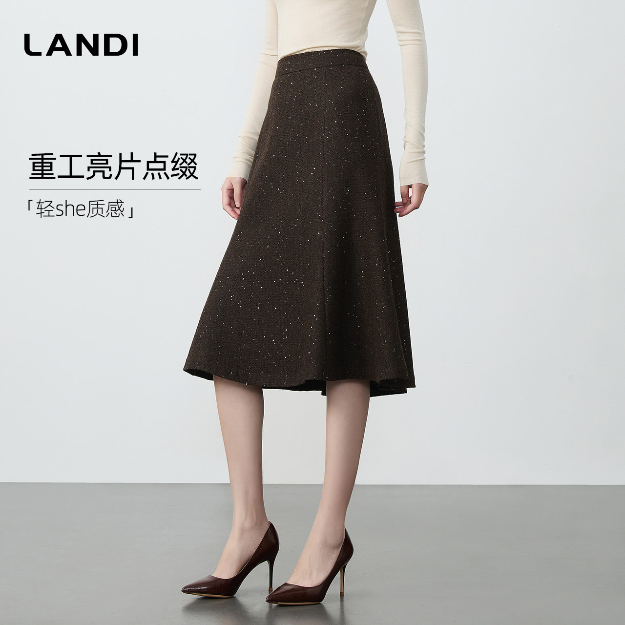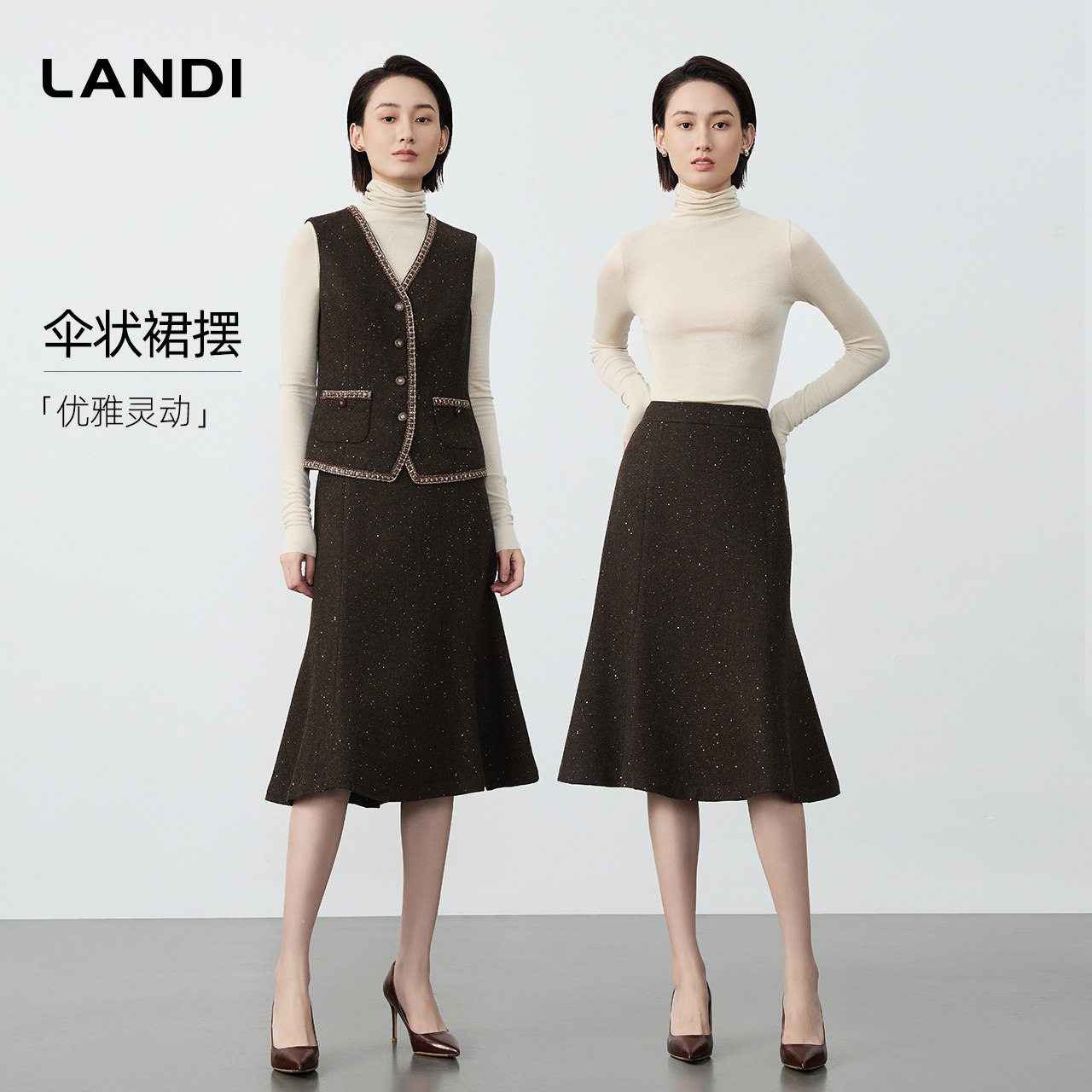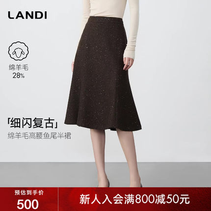 [细闪复古]LANDI深棕绵羊毛高腰鱼尾毛呢半裙女中长款2025冬新品