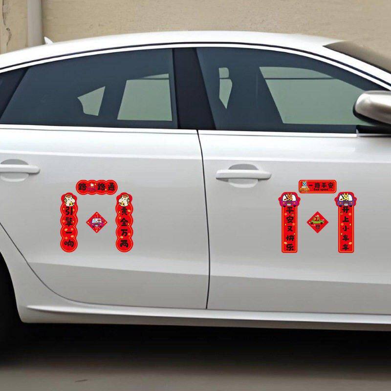 2026马年新款可爱汽车磁吸对联防水防晒轿车装饰迷你车贴春节贴纸