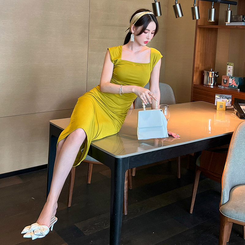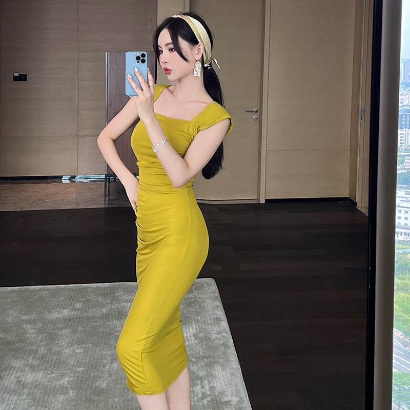 御姐轻熟风性感背带收腰包臀裙女装夏季气质显身材褶皱无袖连衣裙