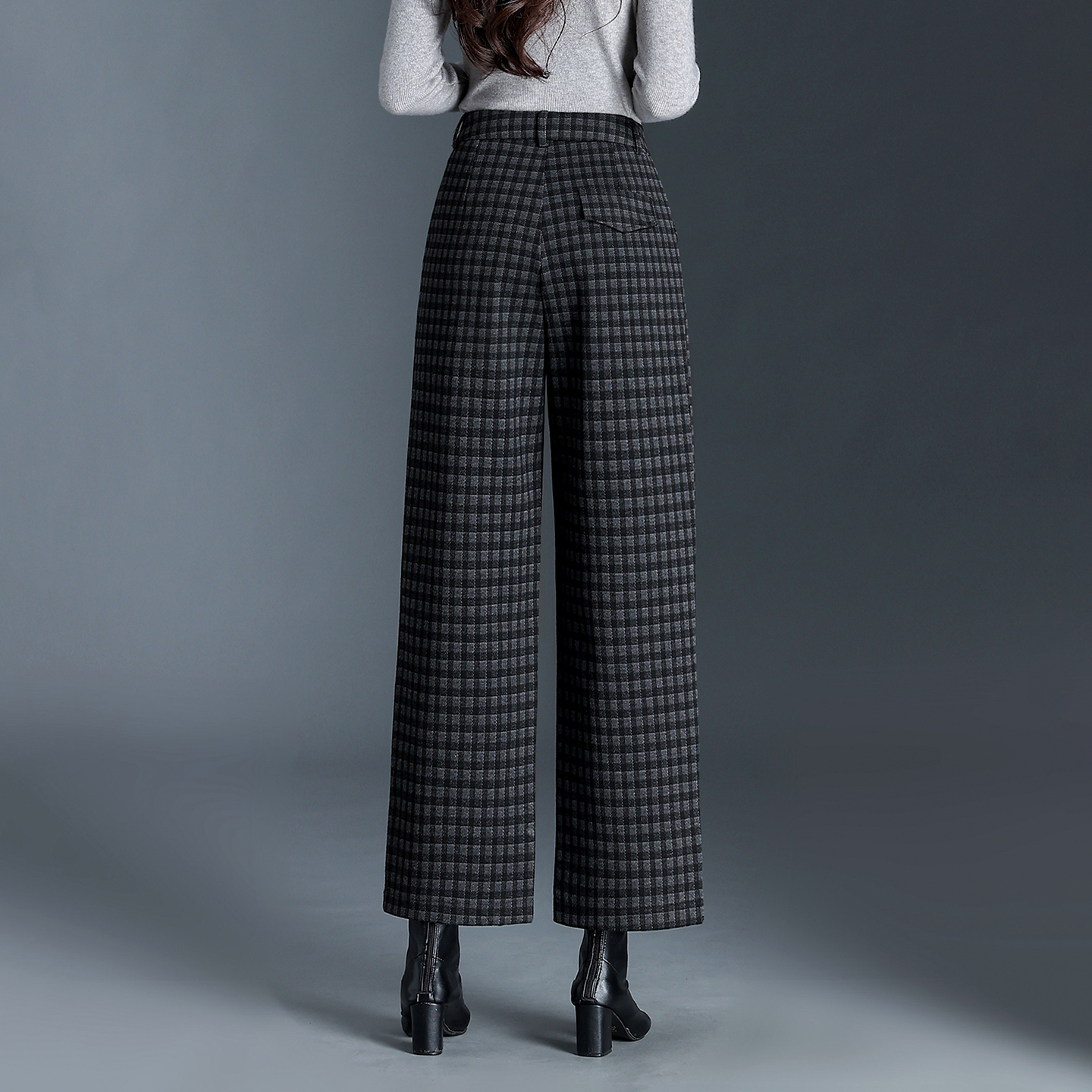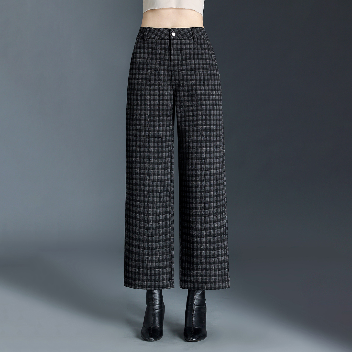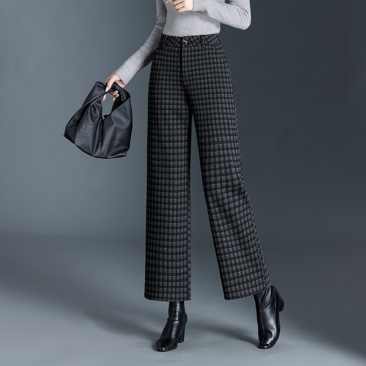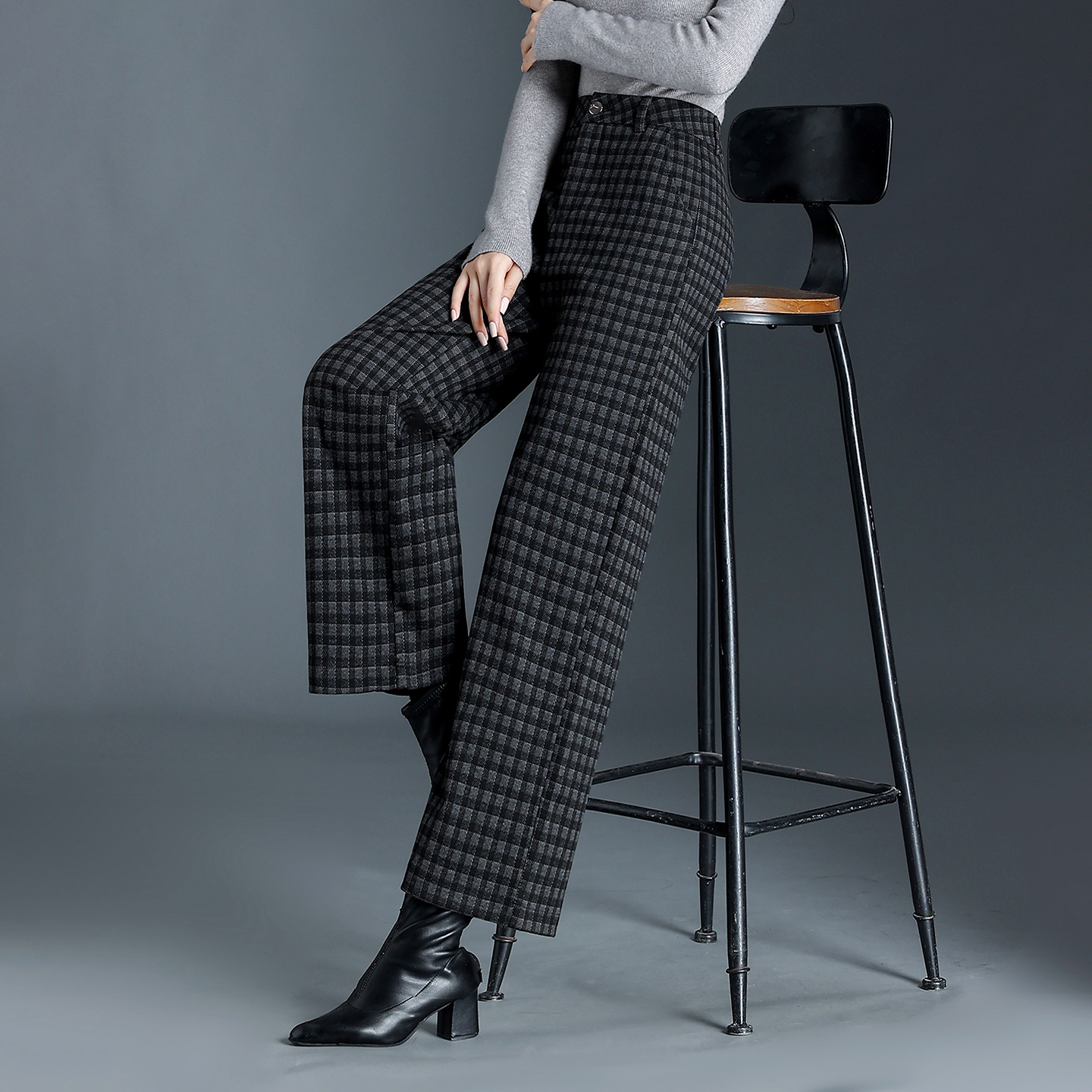千鸟格九分裤女秋冬直筒裤2025新