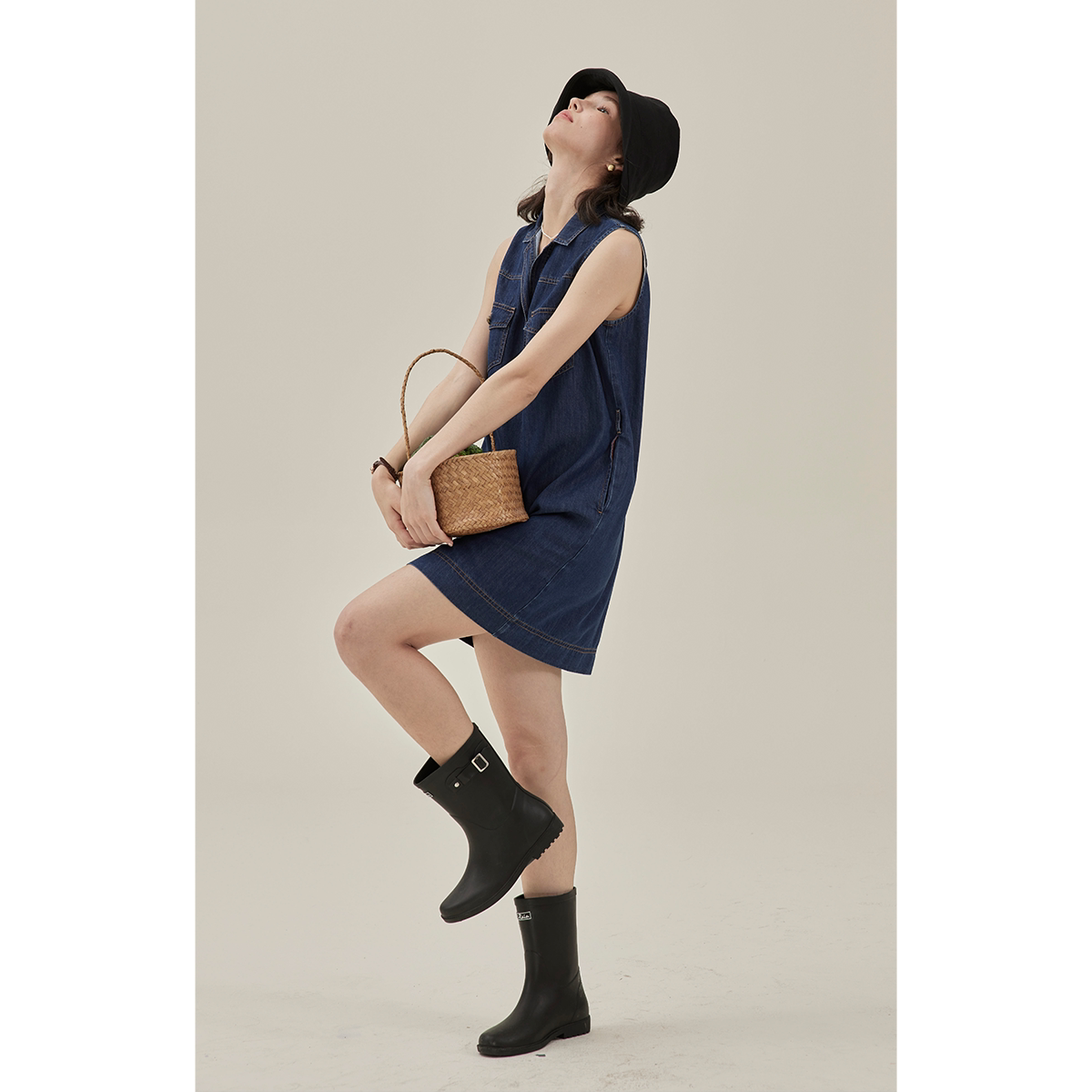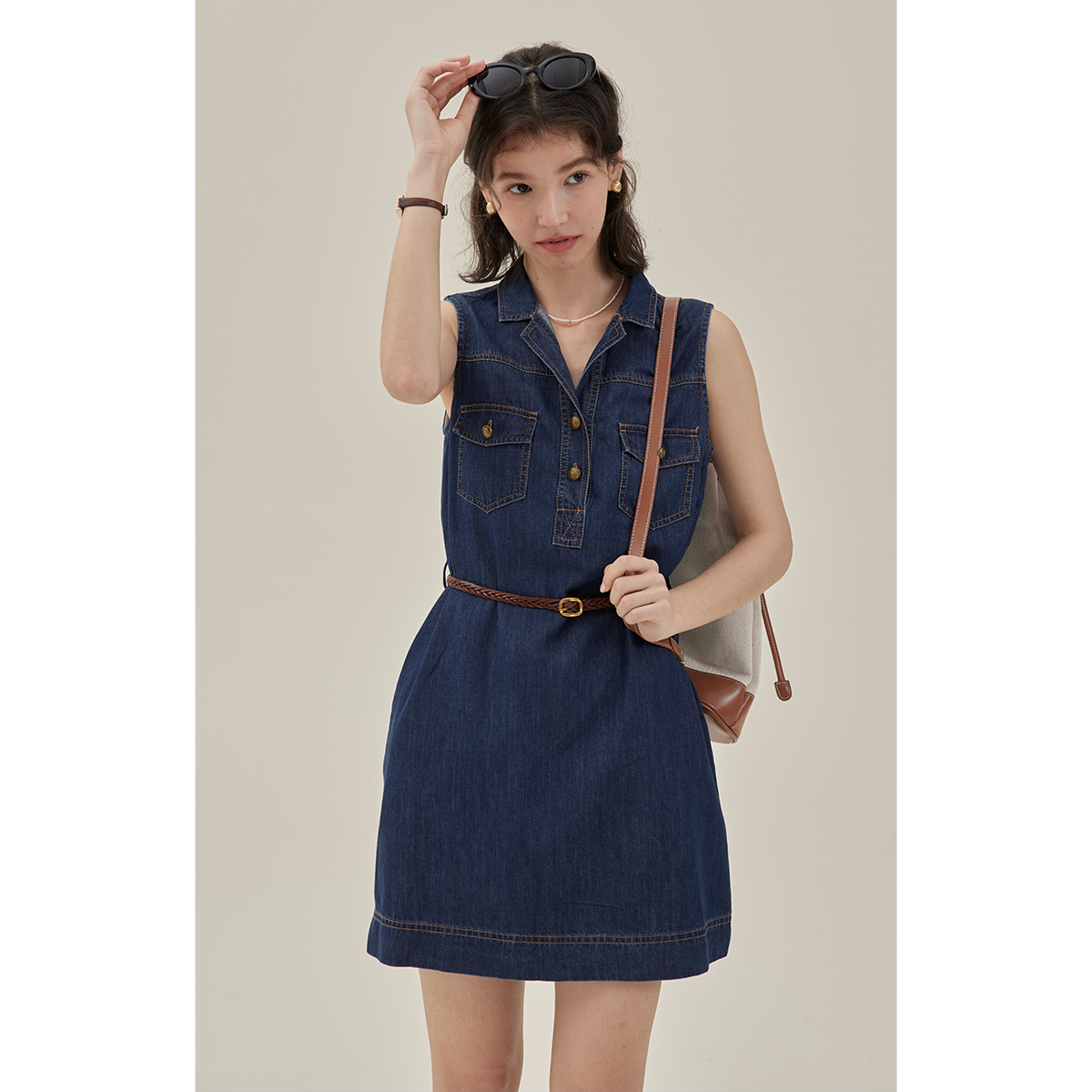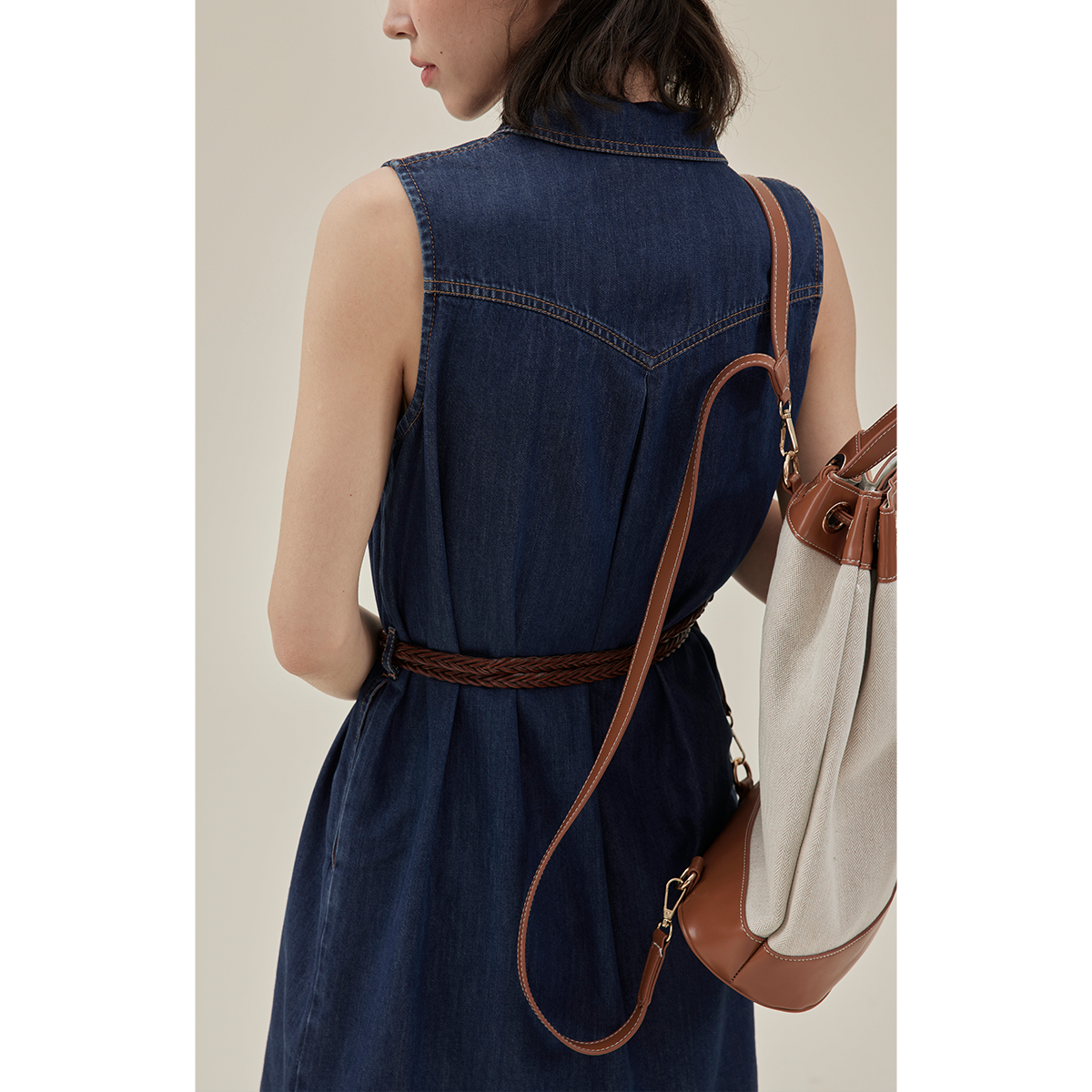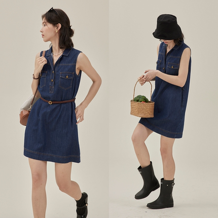 法式复古牛仔无袖连衣裙