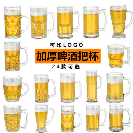 英雄杯 大扎啤杯带把手菠萝杯商用2025新款扎啤酒杯玻璃杯大容量