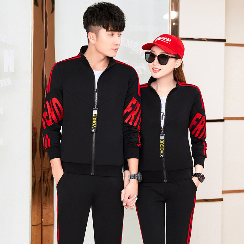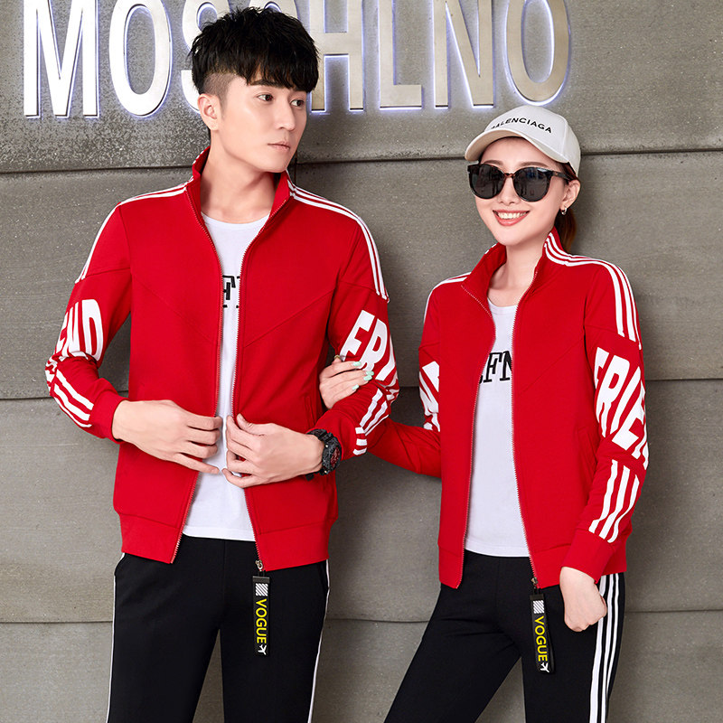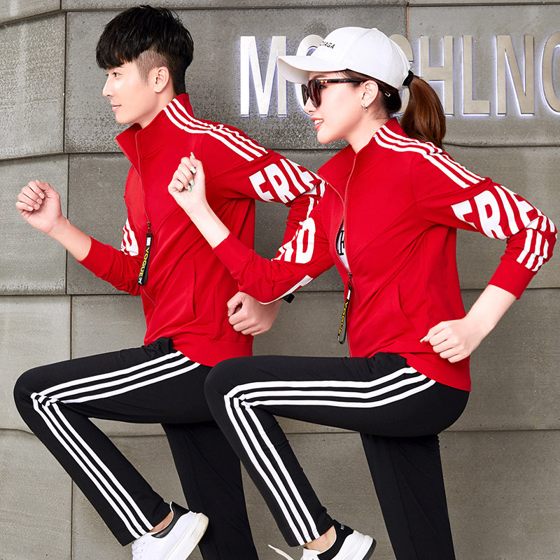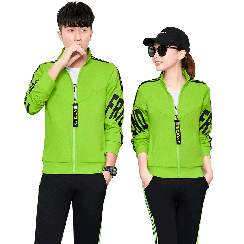 春秋款新品男士开衫两件套荧光绿团体条纹情侣卫衣跑步运动服套装