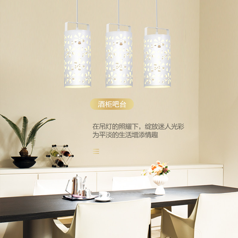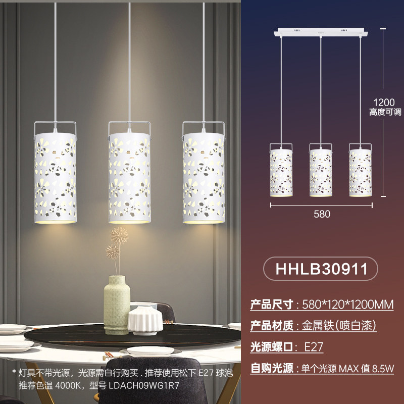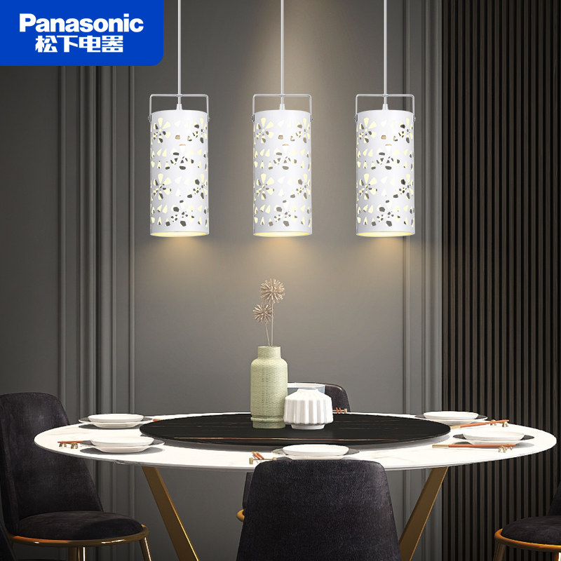 松下餐厅吊灯现代简约镂空花纹三头吊灯官方正品白色金属餐桌灯具