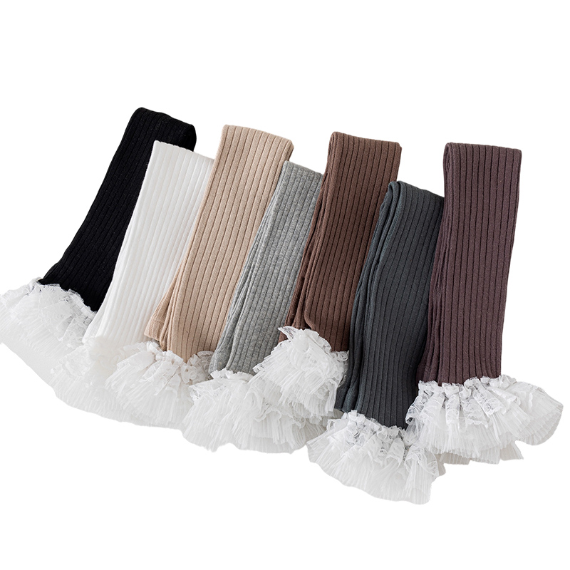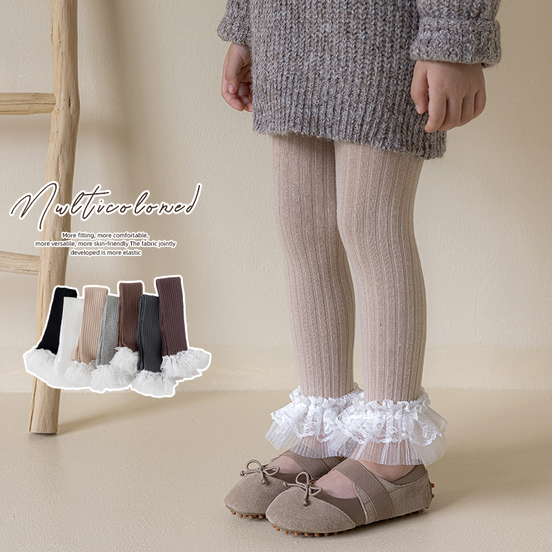 儿童打底裤女童连裤袜春秋新款纯棉打底袜不连脚外穿蕾丝花边九分