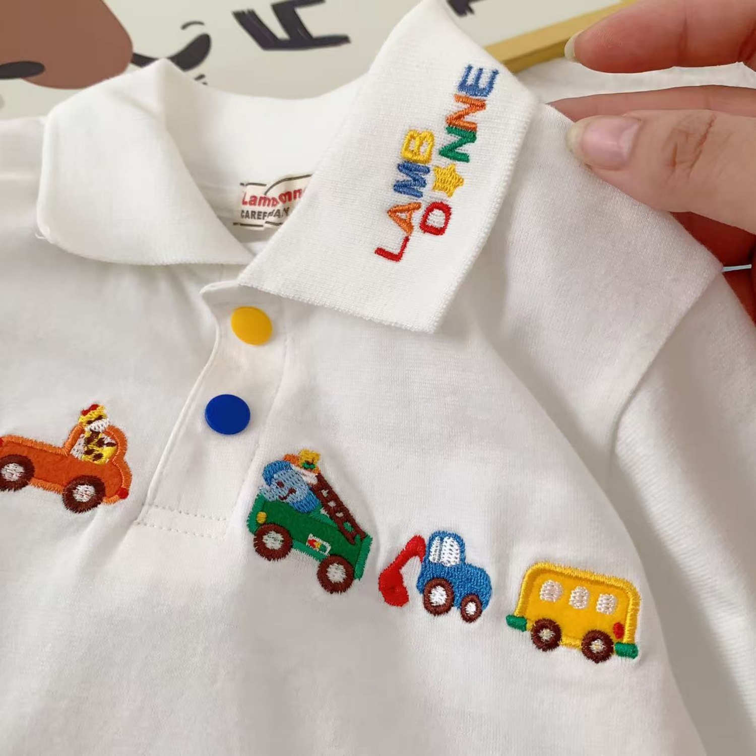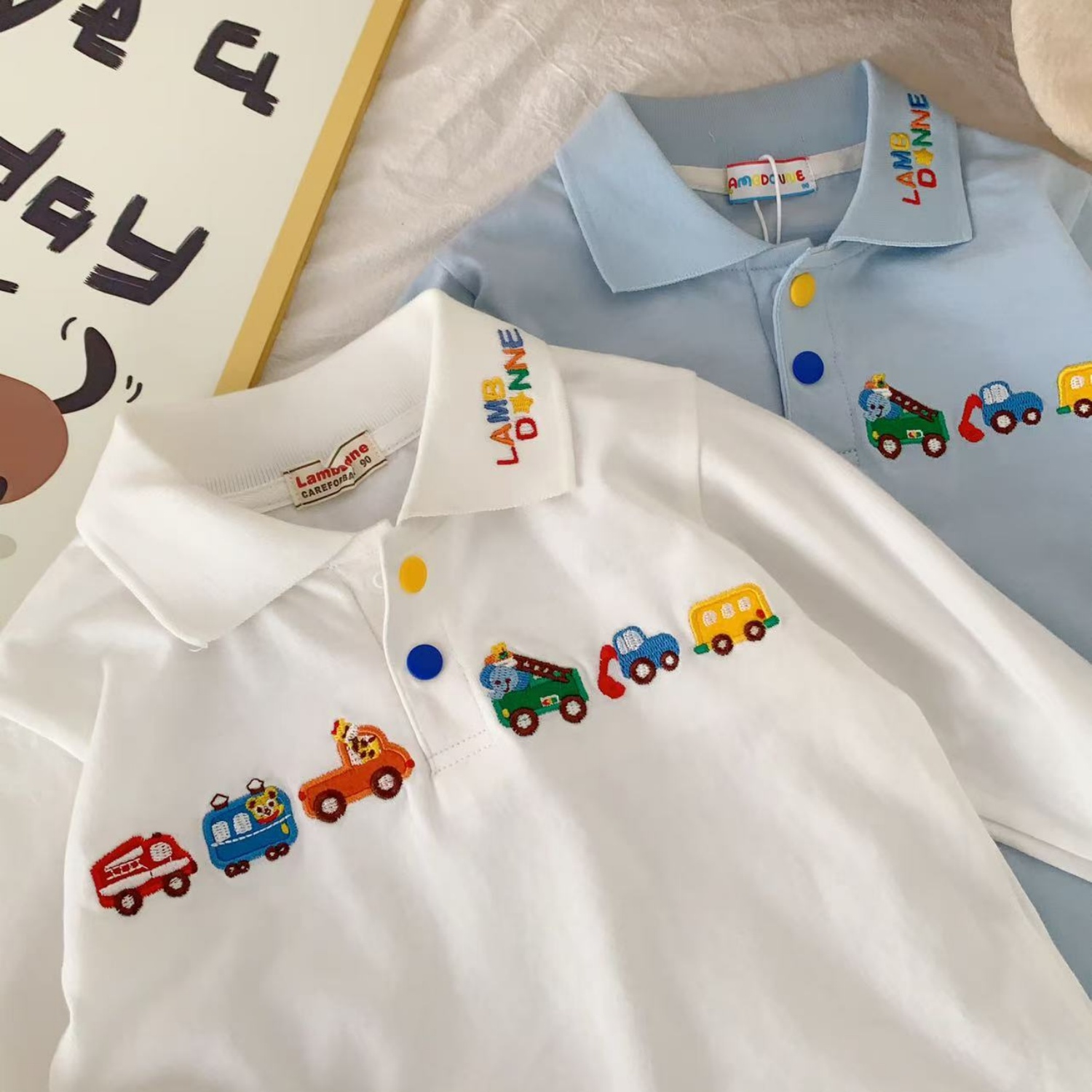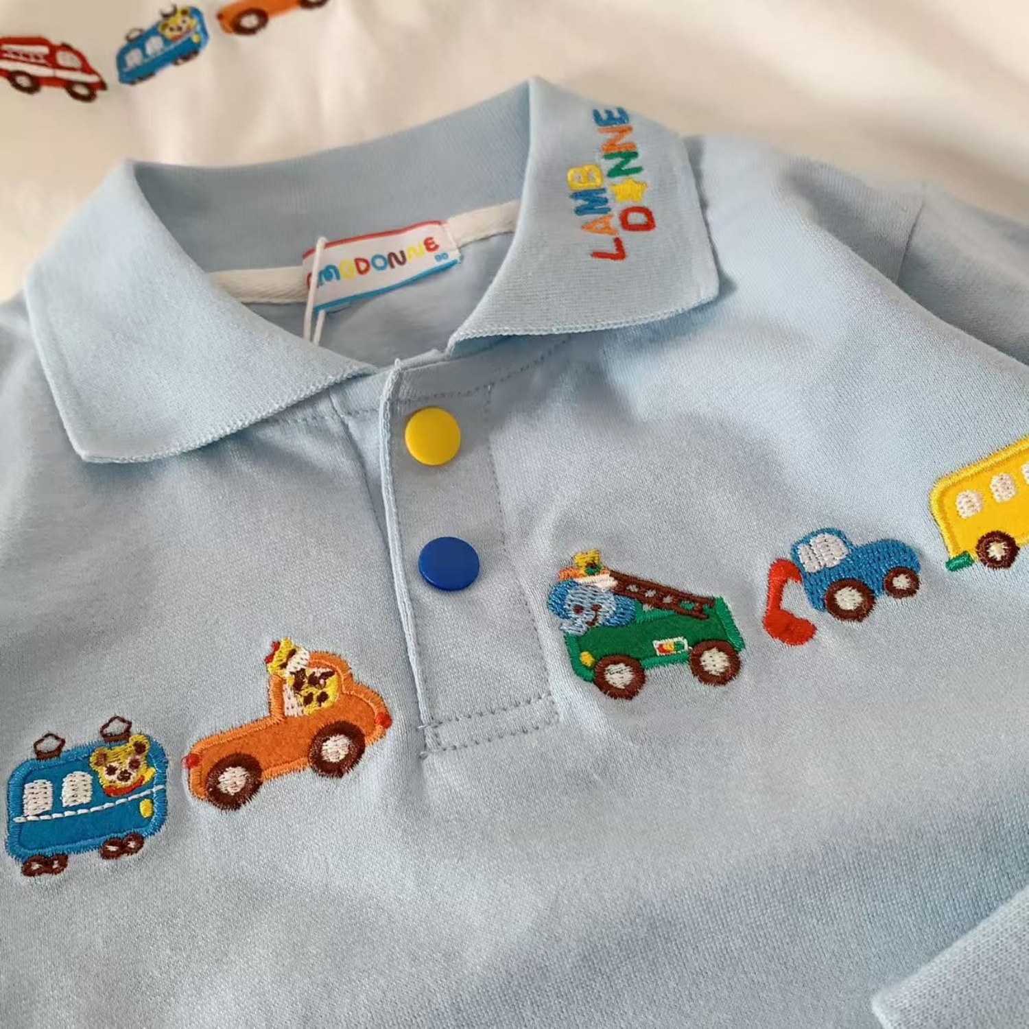 儿童长袖T恤2025秋季男童Polo衫纯棉t卡通汽车刺绣体恤宝宝打底衫