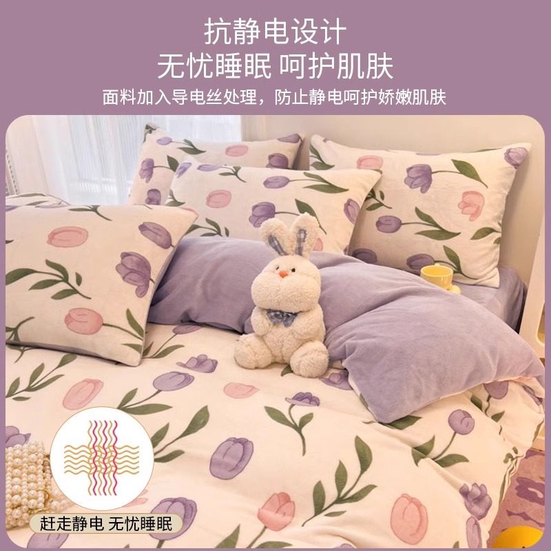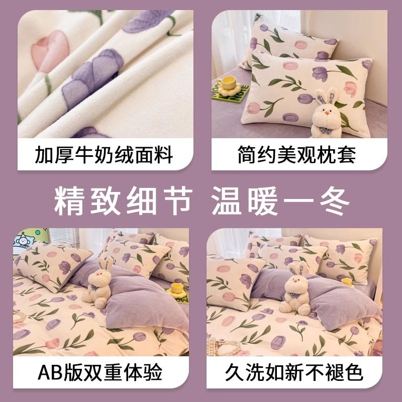 猫人冬季加厚牛奶绒被套单件双面加绒被罩珊瑚法兰绒被单四件套
