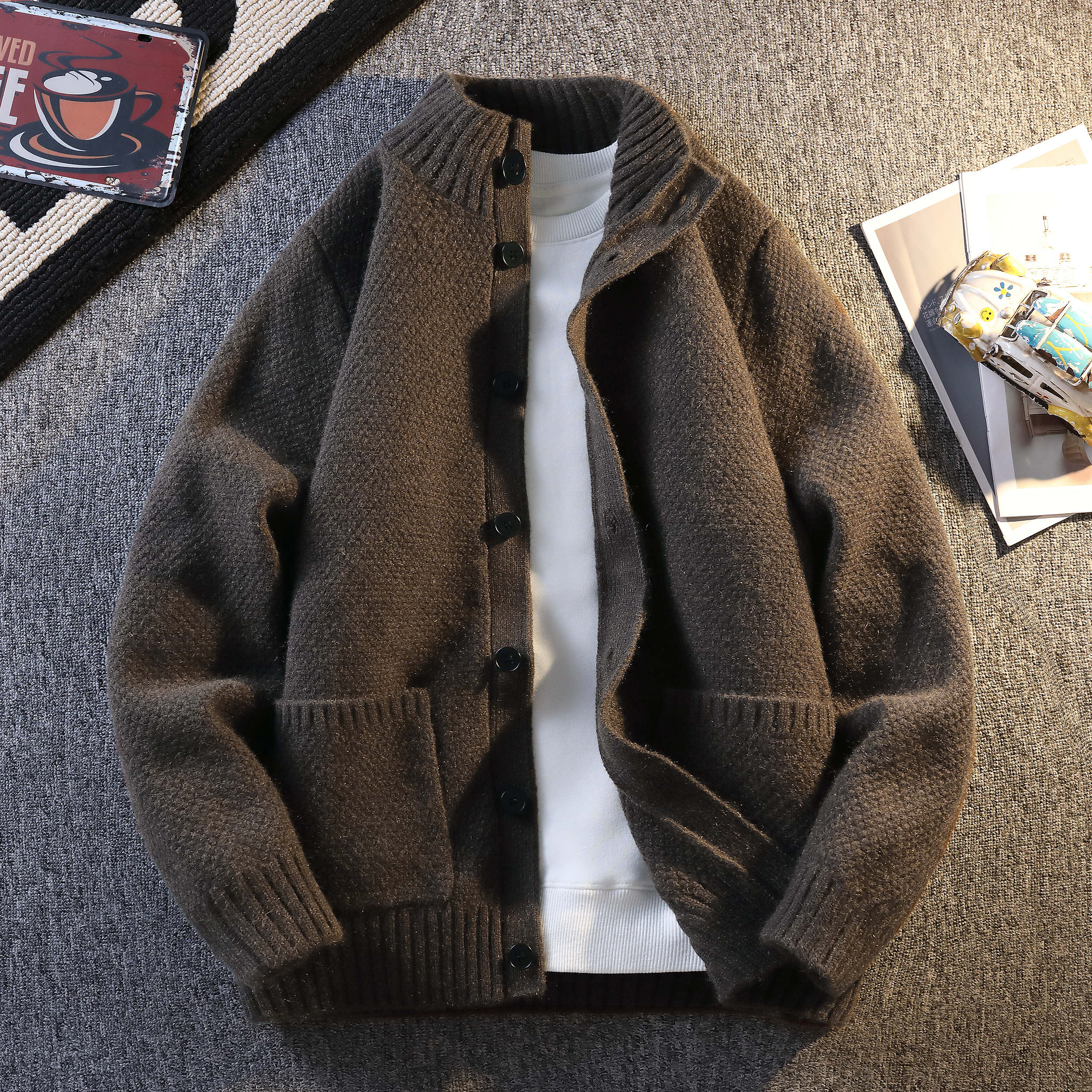 啄木鸟秋冬季肌理感针织衫外套男