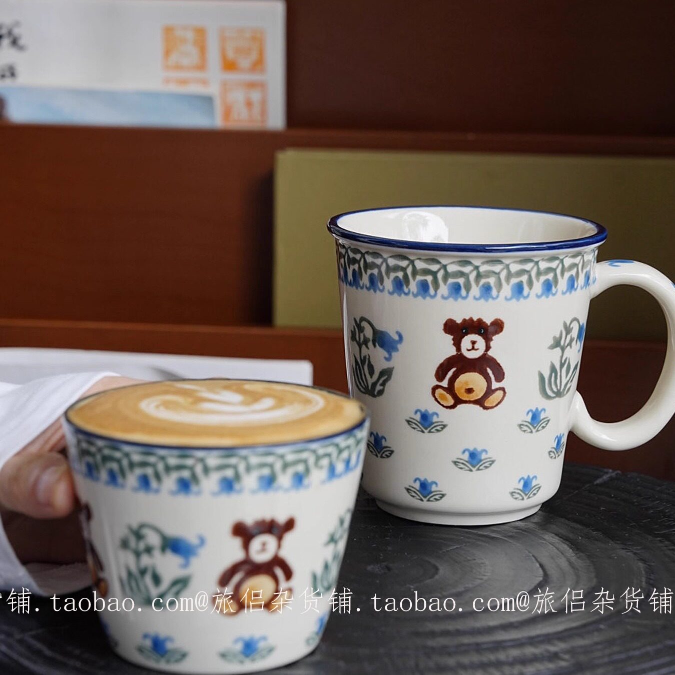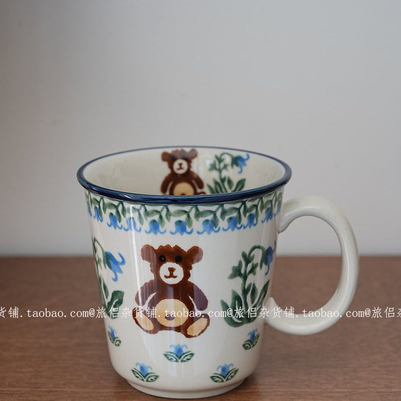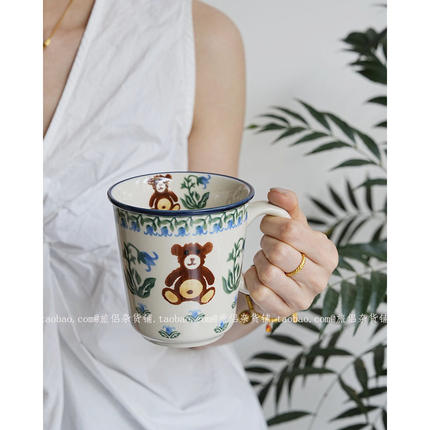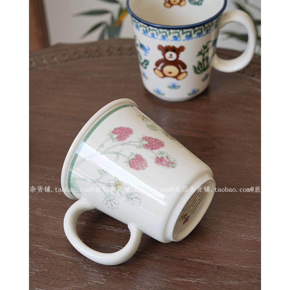 复古釉下彩可爱铃兰小熊陶瓷马克杯清新树莓早餐杯大容量家用水杯