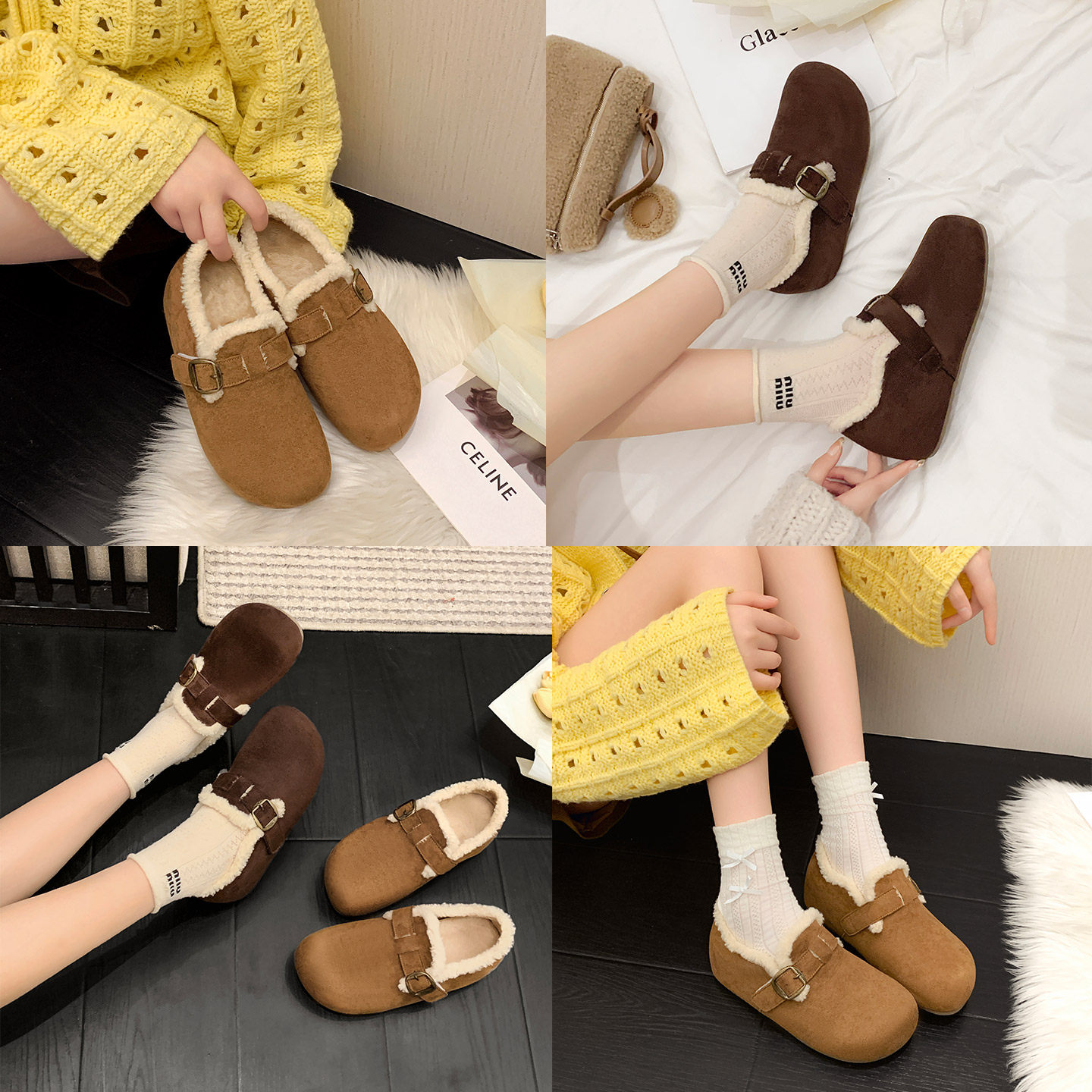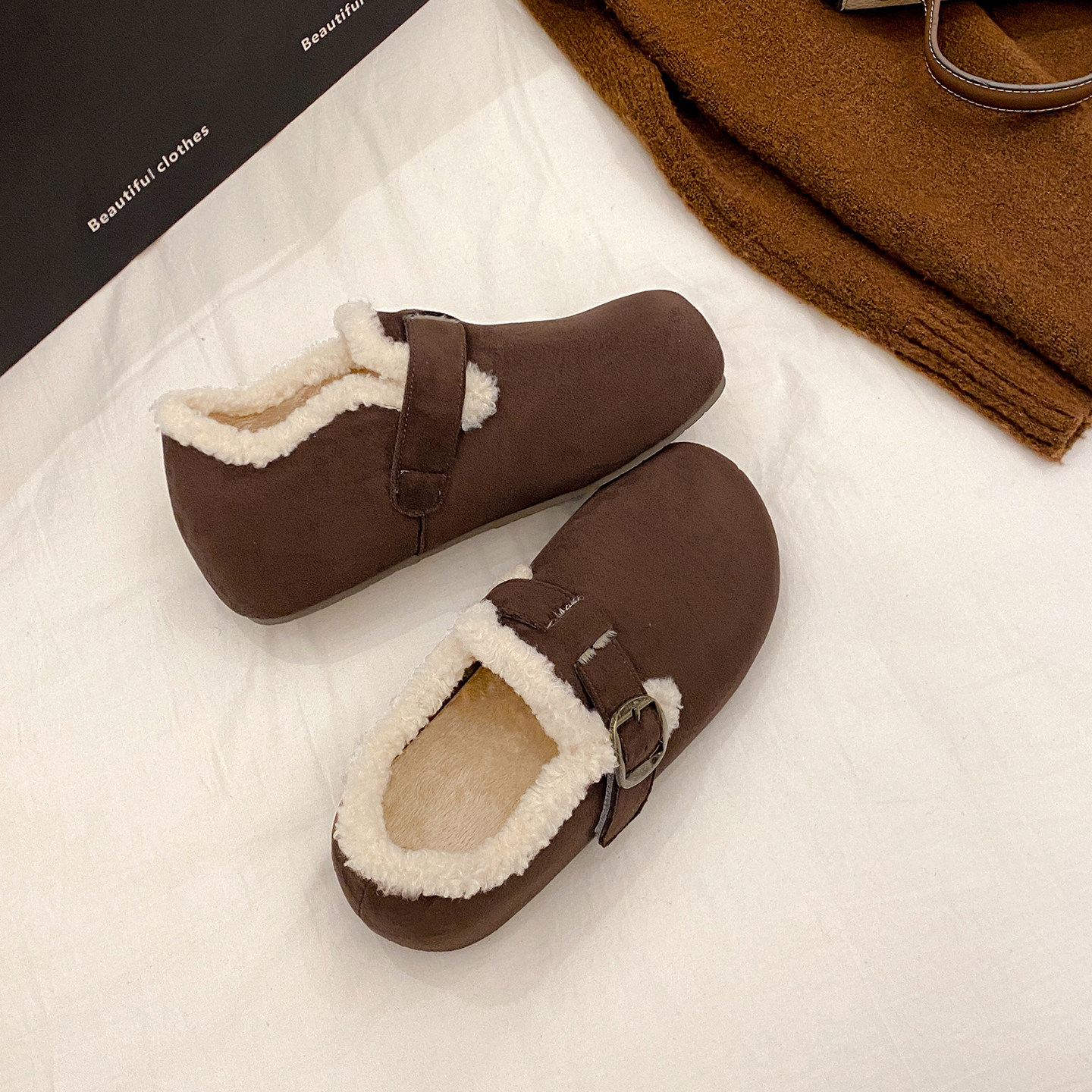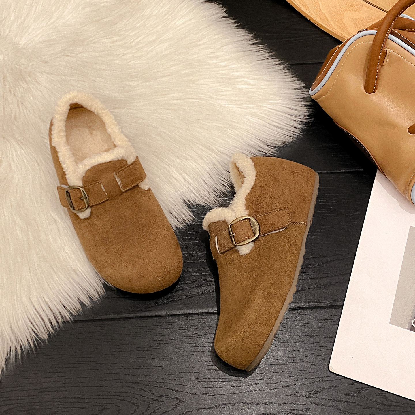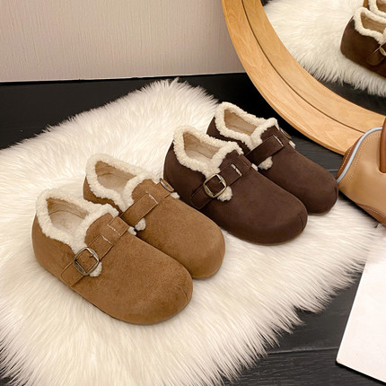 一三良品秋冬露思同款加绒勃肯鞋小码33一脚蹬反绒保暖懒人毛毛鞋