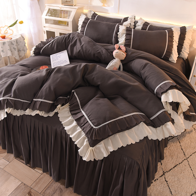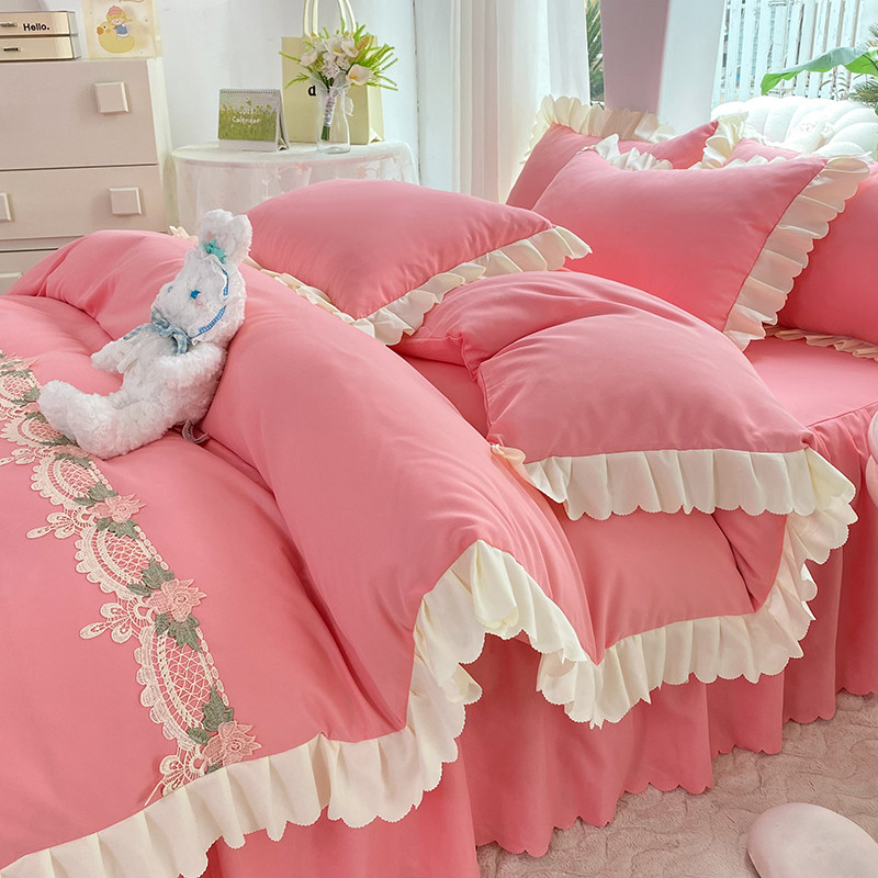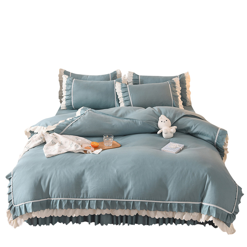 网红加厚少女心床裙全棉纯棉四件套被套床单三件套学生宿舍床上